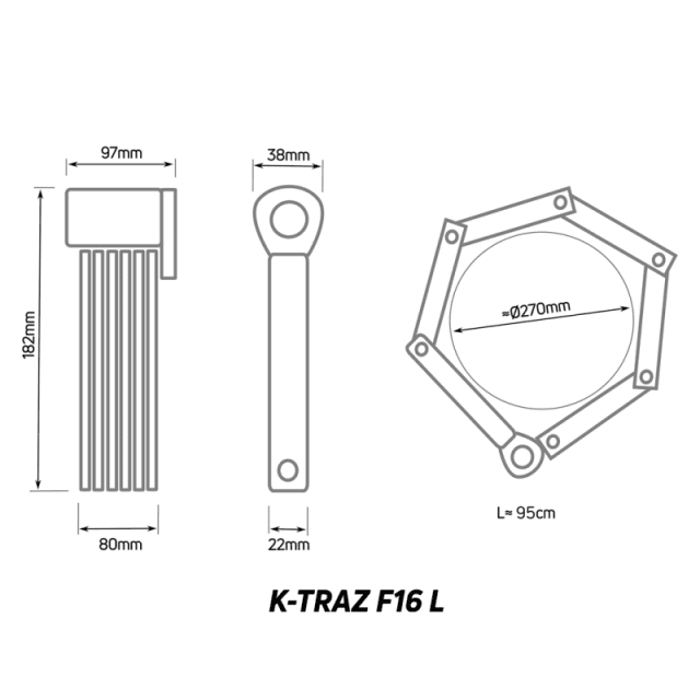 Le Zéfal K-Traz F16L est un antivol pliant long (95 cm) offrant une sécurité 16/20, compact une fois replié et facile à fixer sur le cadre.