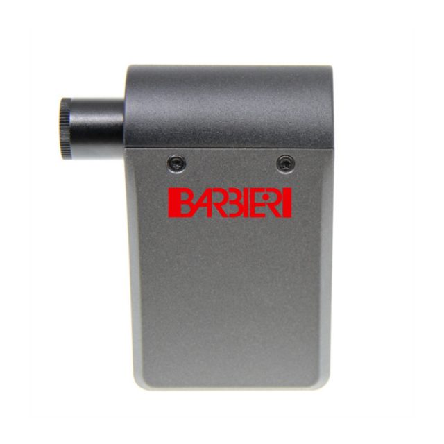 Mini compresseur électrique de poche Barbieri (150 g) avec écran digital, jusqu’à 8 bar, compatible toutes valves, recharge USB-C (85×50×32 mm).