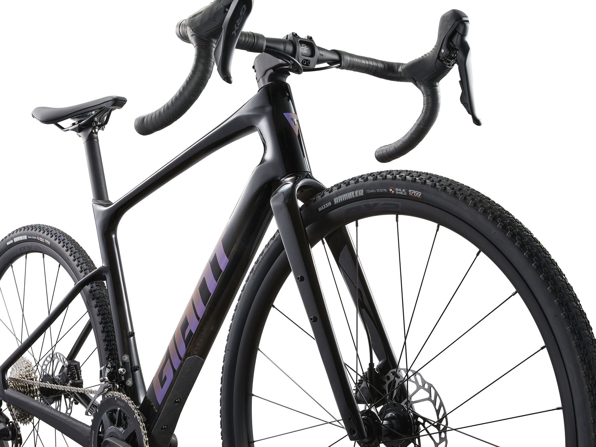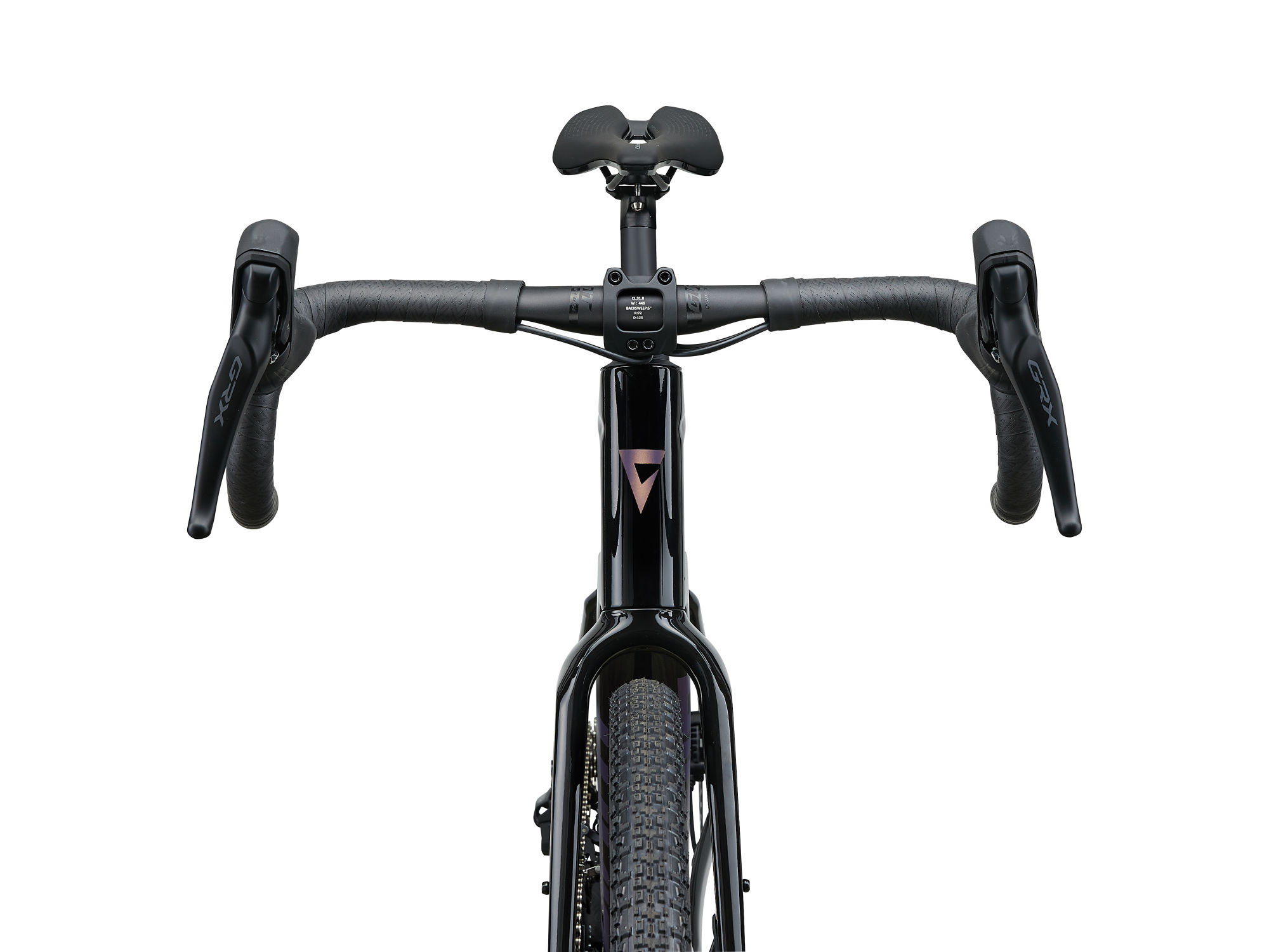 Confort & fonctionnalités : poste de pilotage Giant Contact XR D-Fuse flare à guidon évasé, tige de selle D-Fuse composite avec déport de 14 mm, rangement intégré dans le tube diagonal, multiples points de fixation pour porte-bagage ou garde-boue — prêt pour les randonnées longues ou les aventures gravel chargées.