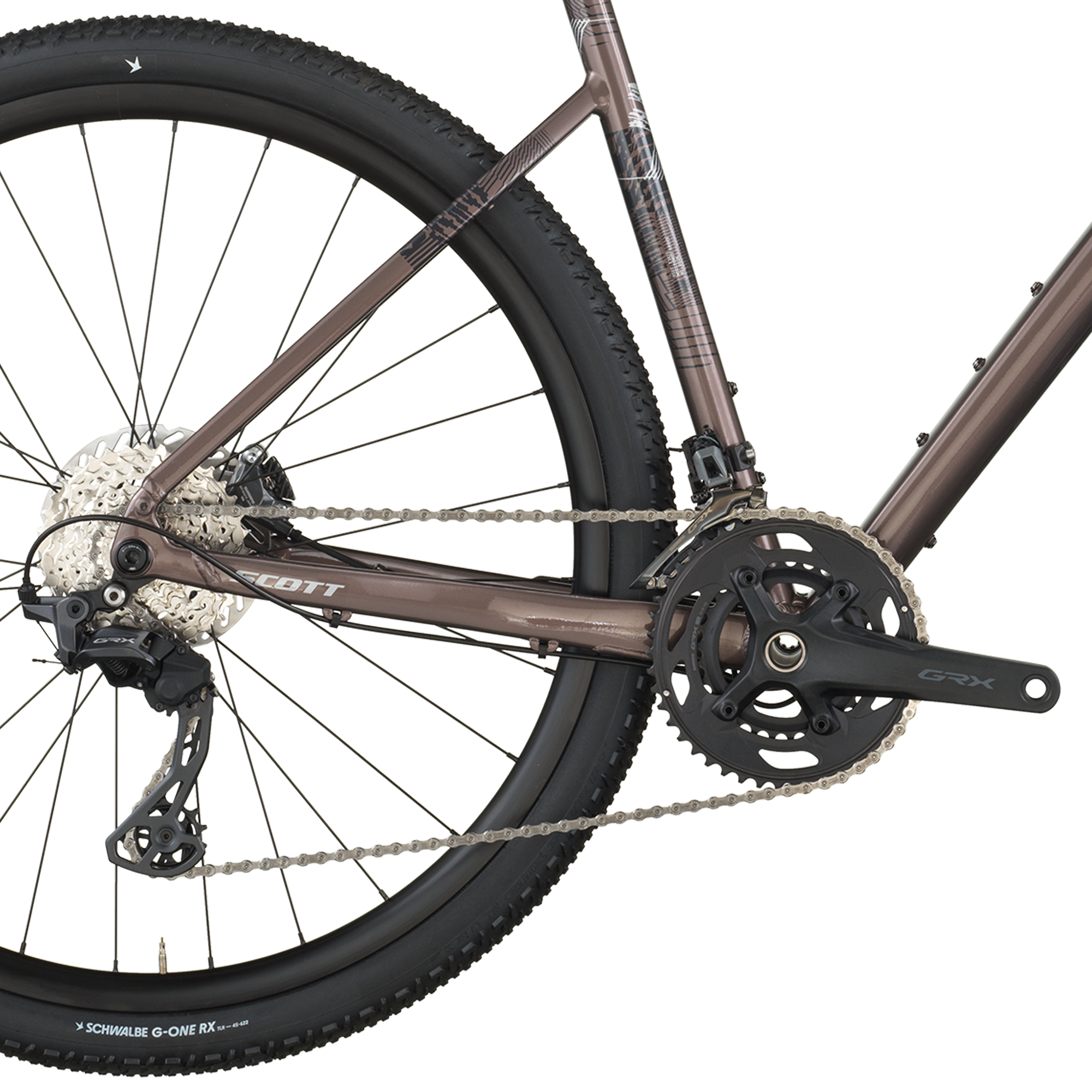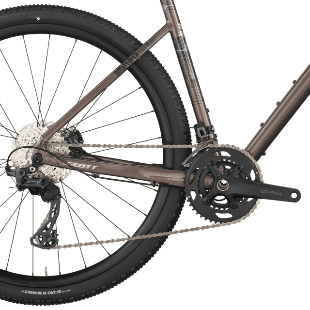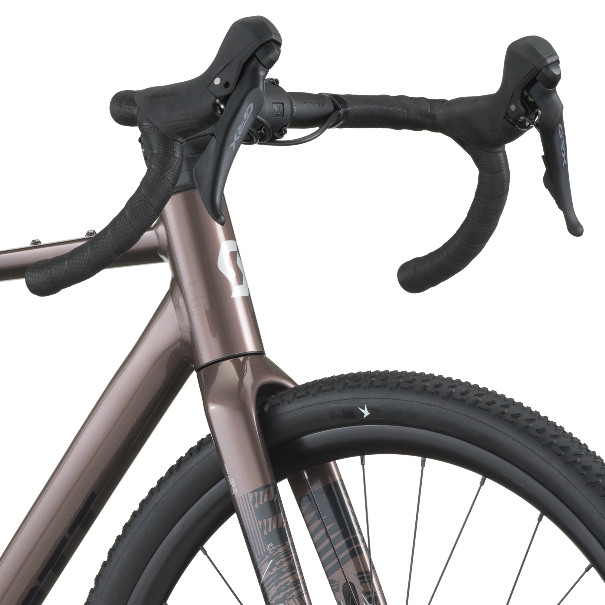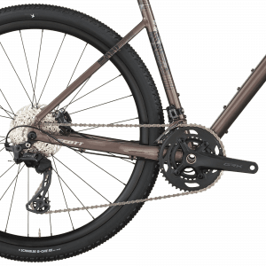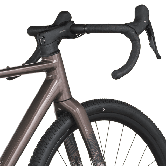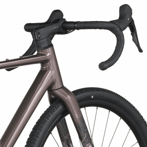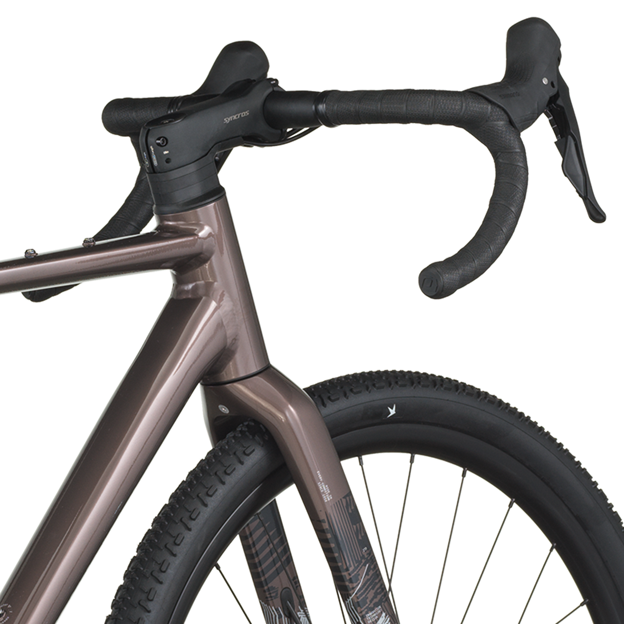 Les roues Alex Race X25 Disc tubeless-ready montées de pneus Schwalbe G-One RX 700×45C, ainsi que un poste de pilotage Syncros Creston 2.0 X, potence Syncros RR2.5 et selle Syncros Tofino Regular 2.5, assurent adhérence, confort et confiance sur longues sorties all-road ou chemins mixtes.