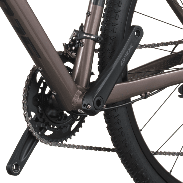 Le freinage est assuré par disques hydrauliques Shimano BR-RX410 avec rotors SM-RT-CL700 160 mm à l’avant et à l’arrière, garantissant puissance, modulation et contrôle quelles que soient les conditions.