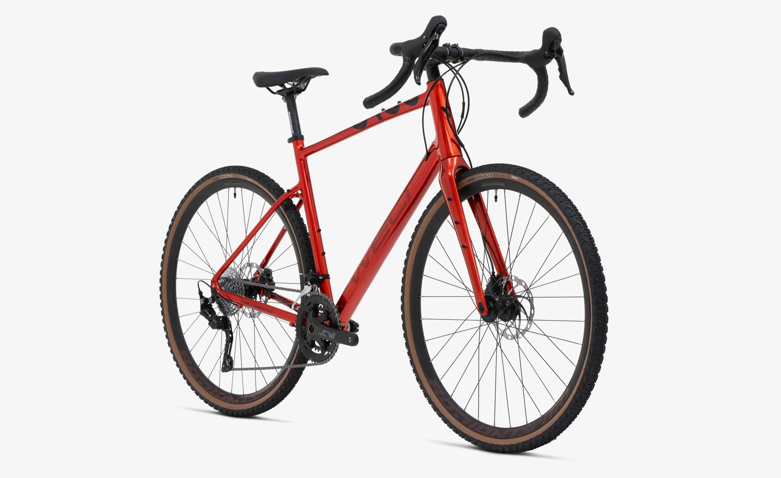 Roues / pneus : jantes Cox GA23 tubeless ready largeur interne ≈ 23 mm, pneus VeeTire Rail 700×45C (flanc tanwall) pour confort, grip et capacité à encaisser les surfaces mixtes.