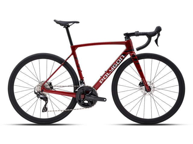 Les roues sont des jantes “Polygon RD6 Disc” (24 rayons) montées de pneus Schwalbe One Addix 700×28C tubeless‑ready : bon compromis entre rendement, légèreté et polyvalence.