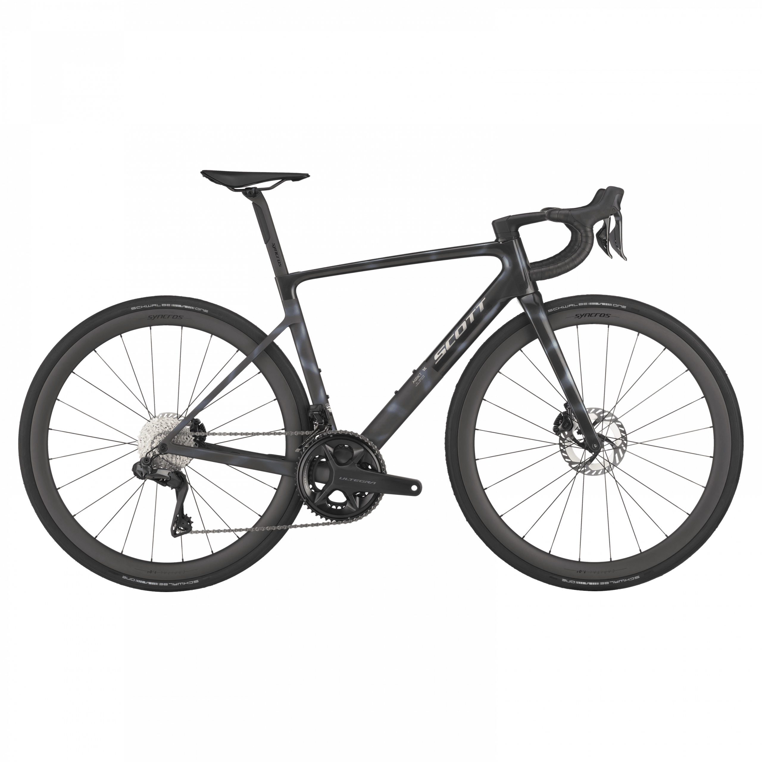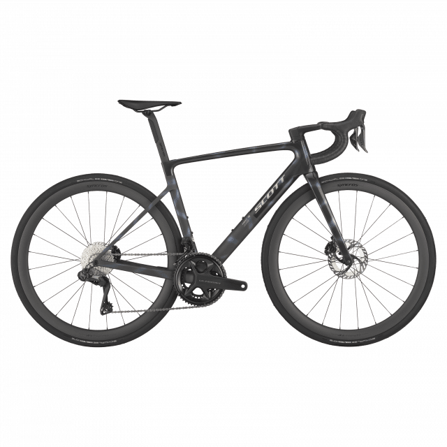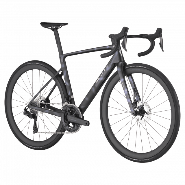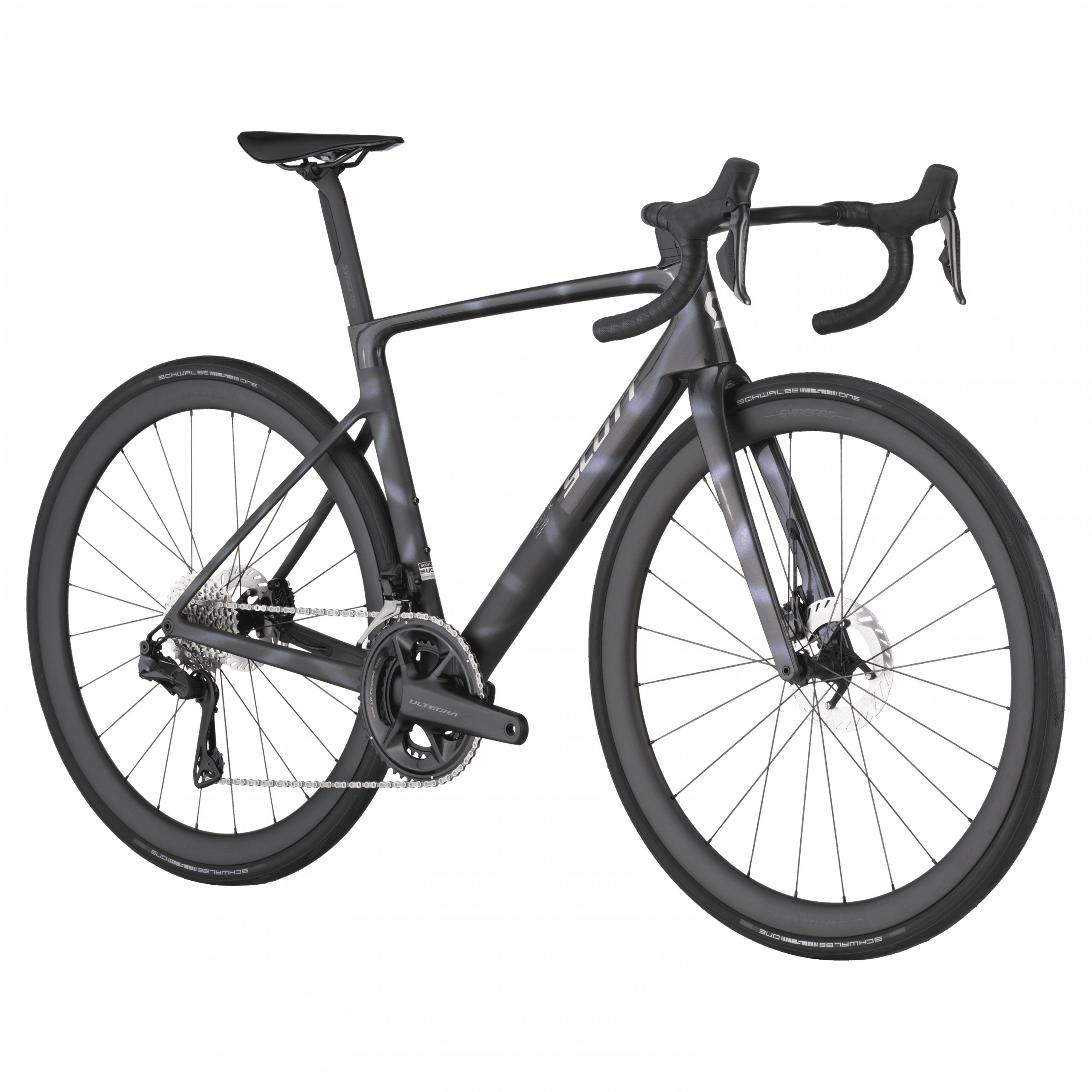 Il est équipé d’une transmission Shimano Ultegra Di2 2×12 vitesses (manettes ST-R8170, dérailleurs FD/RD-R8150) offrant des changements électroniques rapides et fiables, idéale pour les efforts soutenus en montée ou en sprint.
