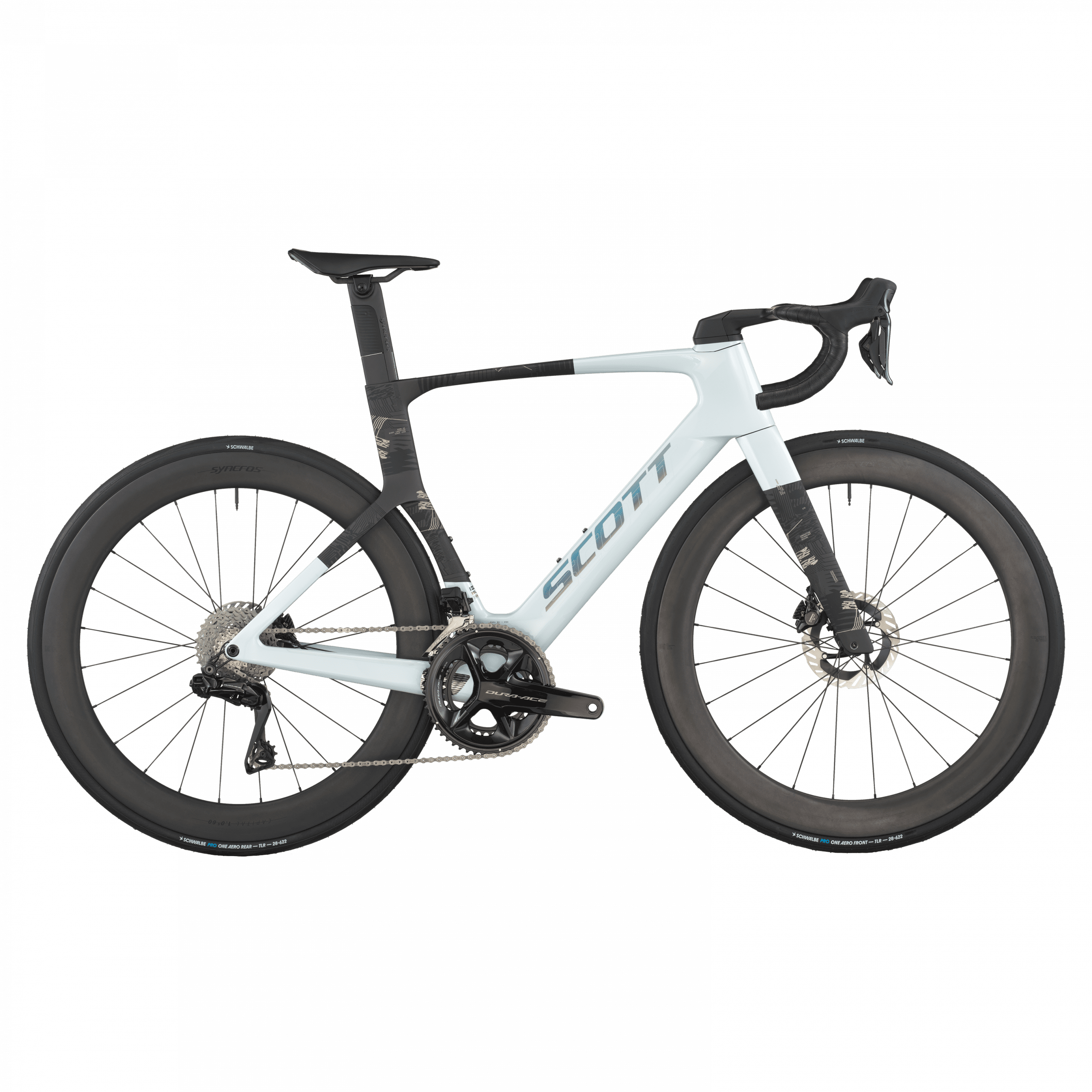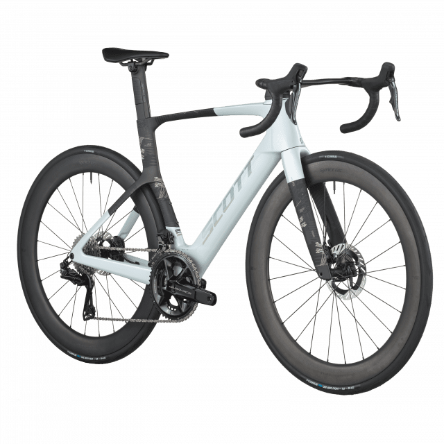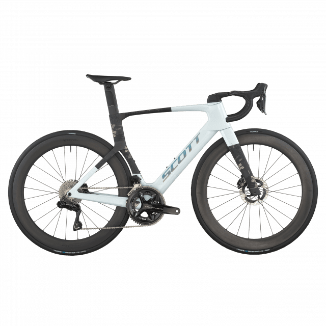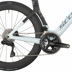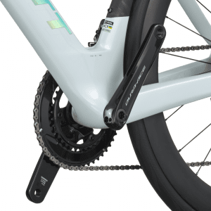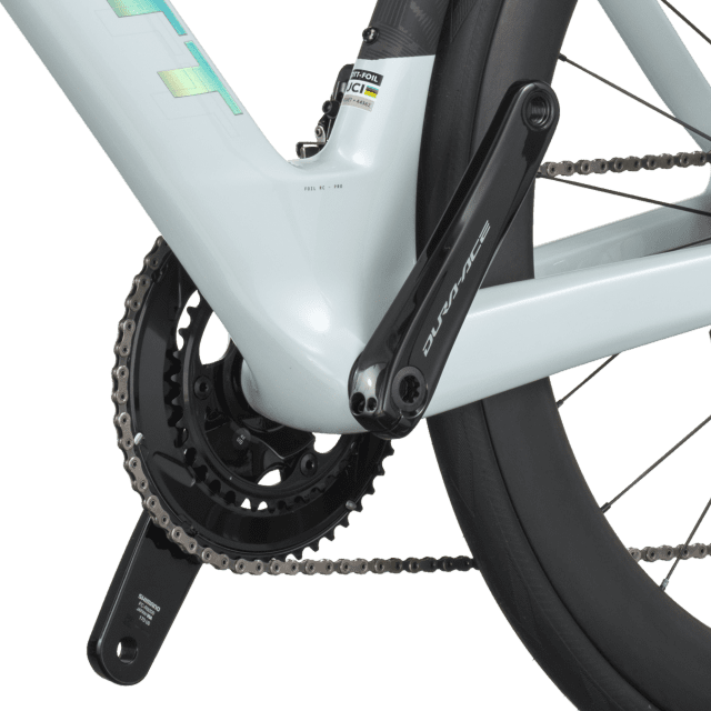 Il est équipé d’une transmission Shimano Dura-Ace Di2 électronique 2×12 vitesses (manettes ST-R9270, dérailleurs FD/RD-R9250, pédalier 52/36 et cassette 11-34) offrant des changements ultra-précis, fluides et réactifs dans toutes les conditions.