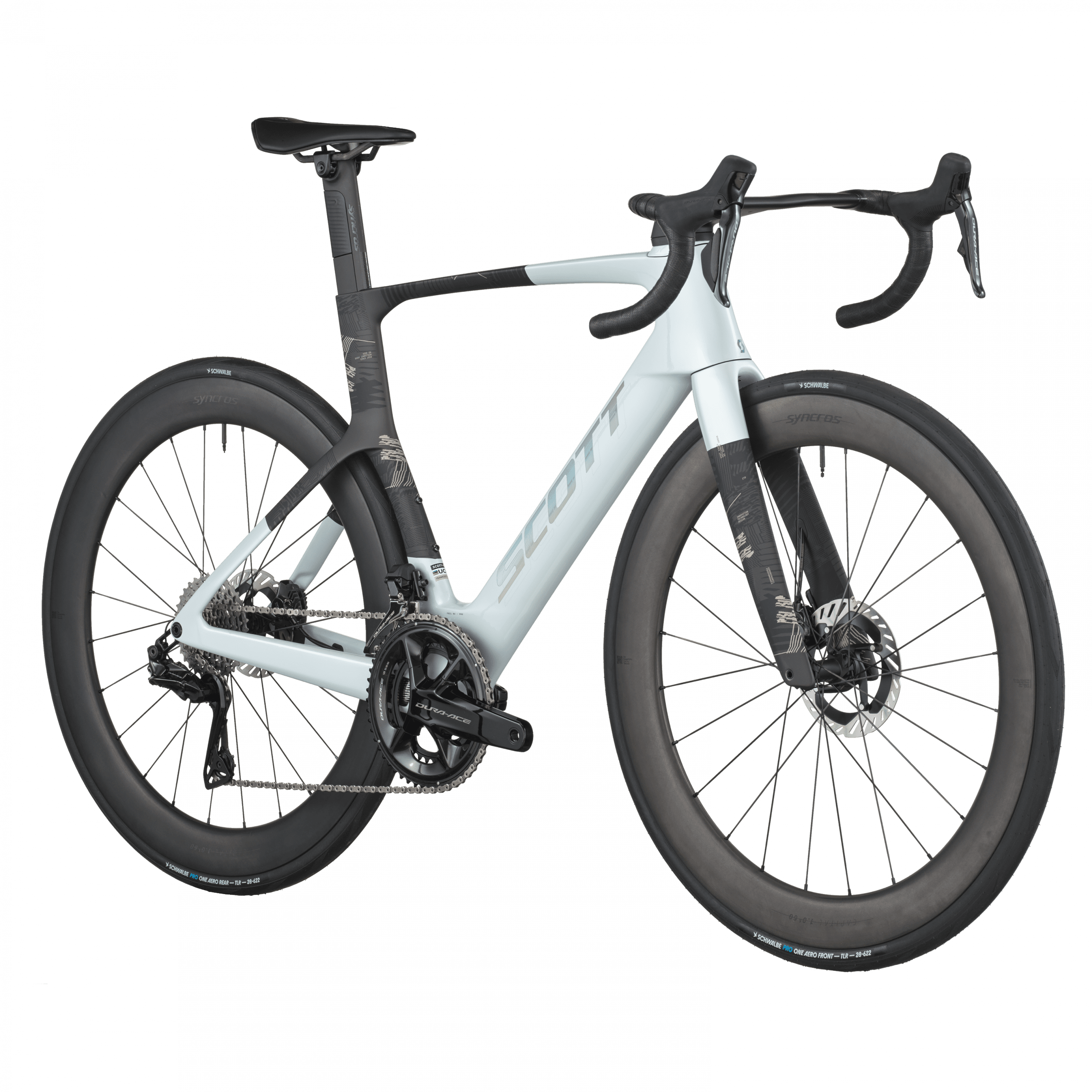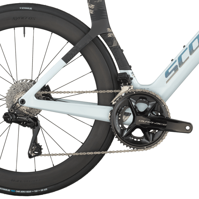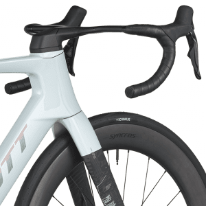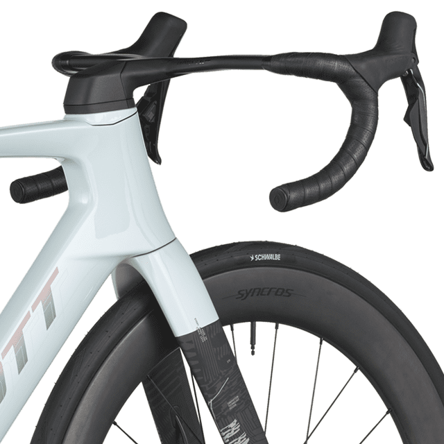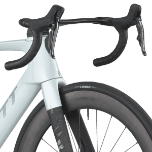Les roues Syncros Capital 1.0S Aero 60 mm combinées à des pneus Schwalbe PRO ONE Aero 700×28C et un poste de pilotage intégré Syncros Creston iC SL Aero apportent un excellent compromis entre aérodynamisme, rigidité et confort pour les longues distances.
