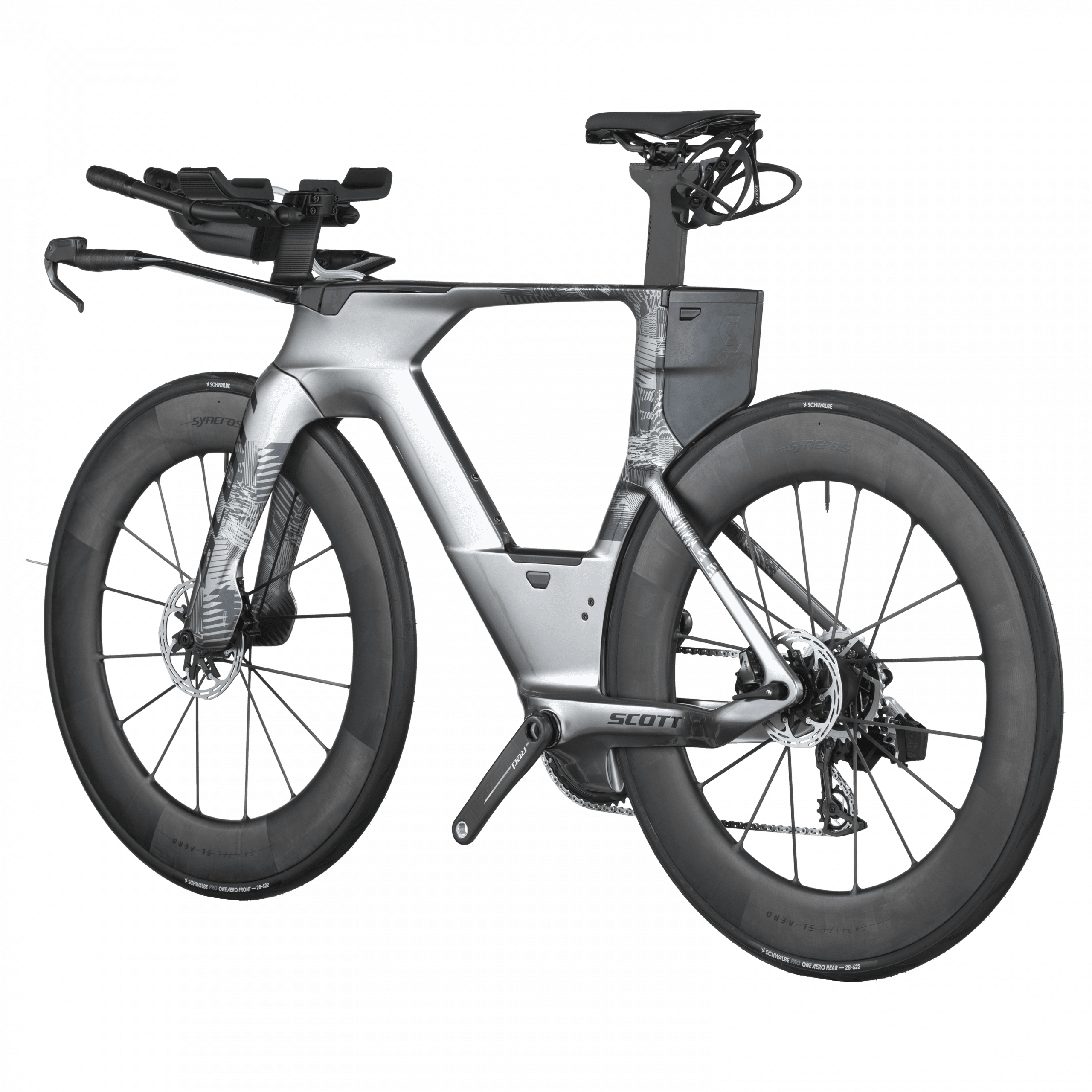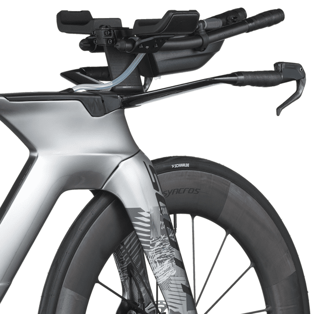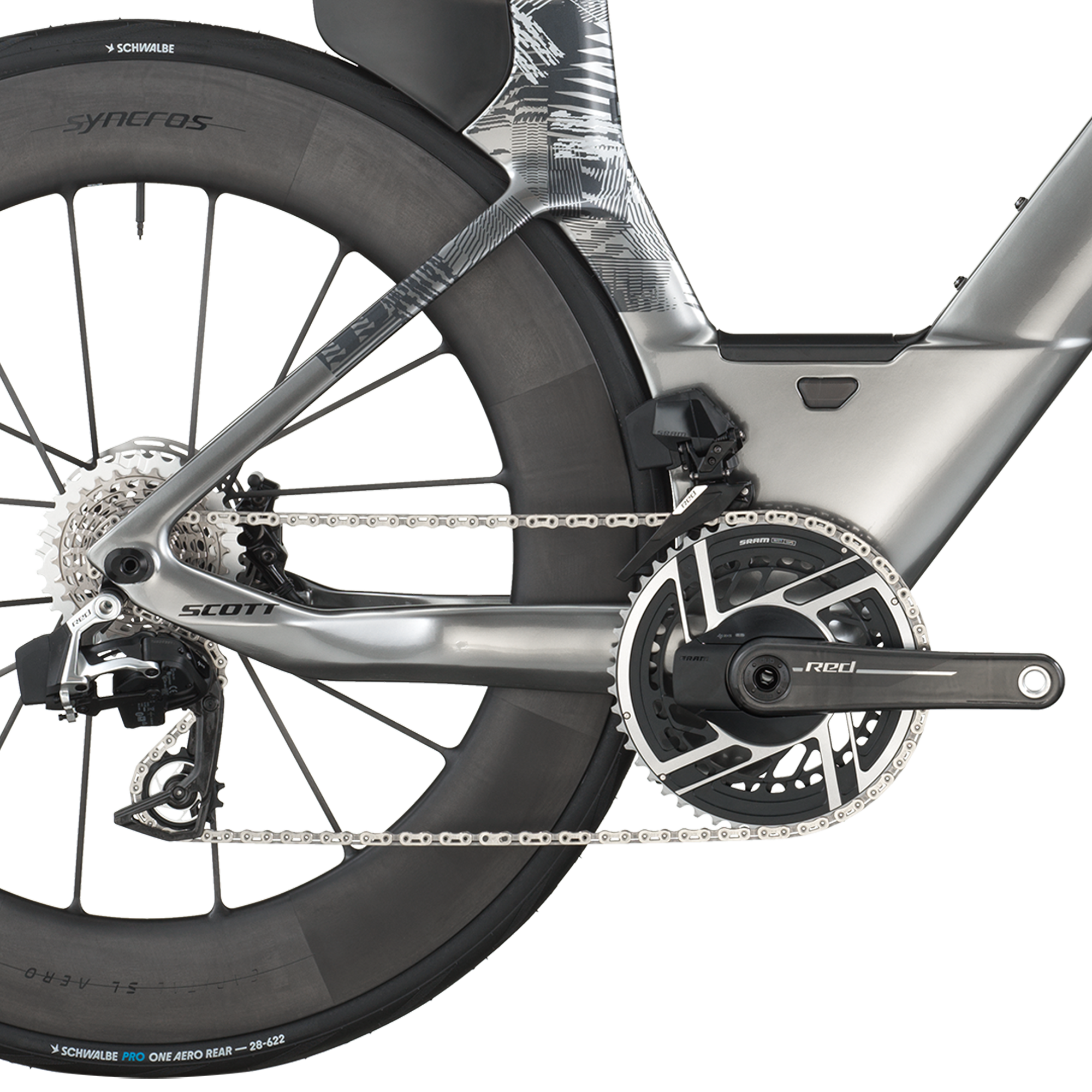 Les roues Syncros Capital SL Aero 80 mm tubeless‑ready associées à des pneus Schwalbe PRO ONE Aero TL assurent une pénétration dans l’air maximale, un excellent rendement au pédalage et une tenue de route précise sur surfaces roulantes.