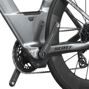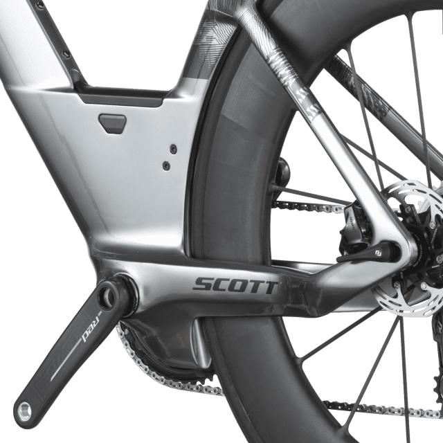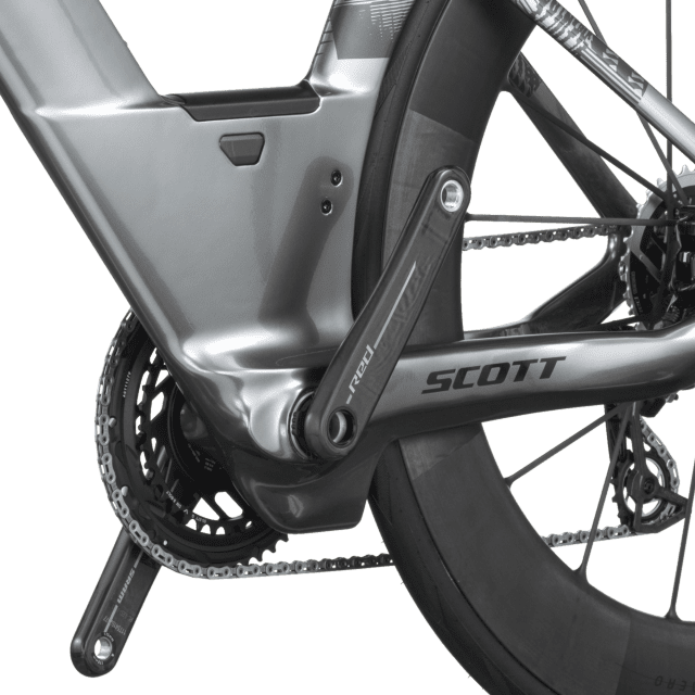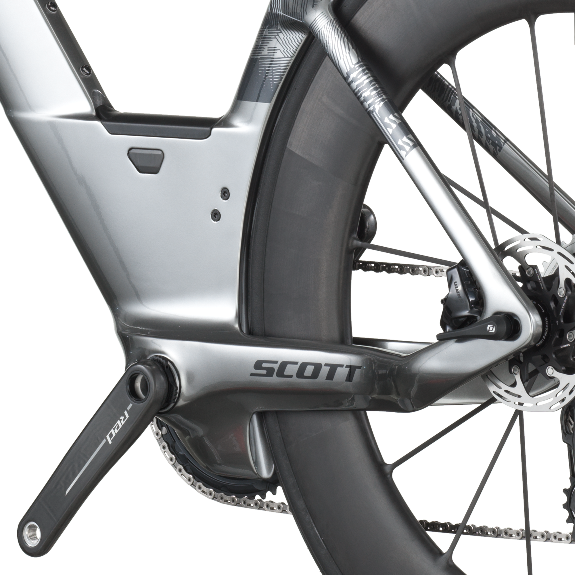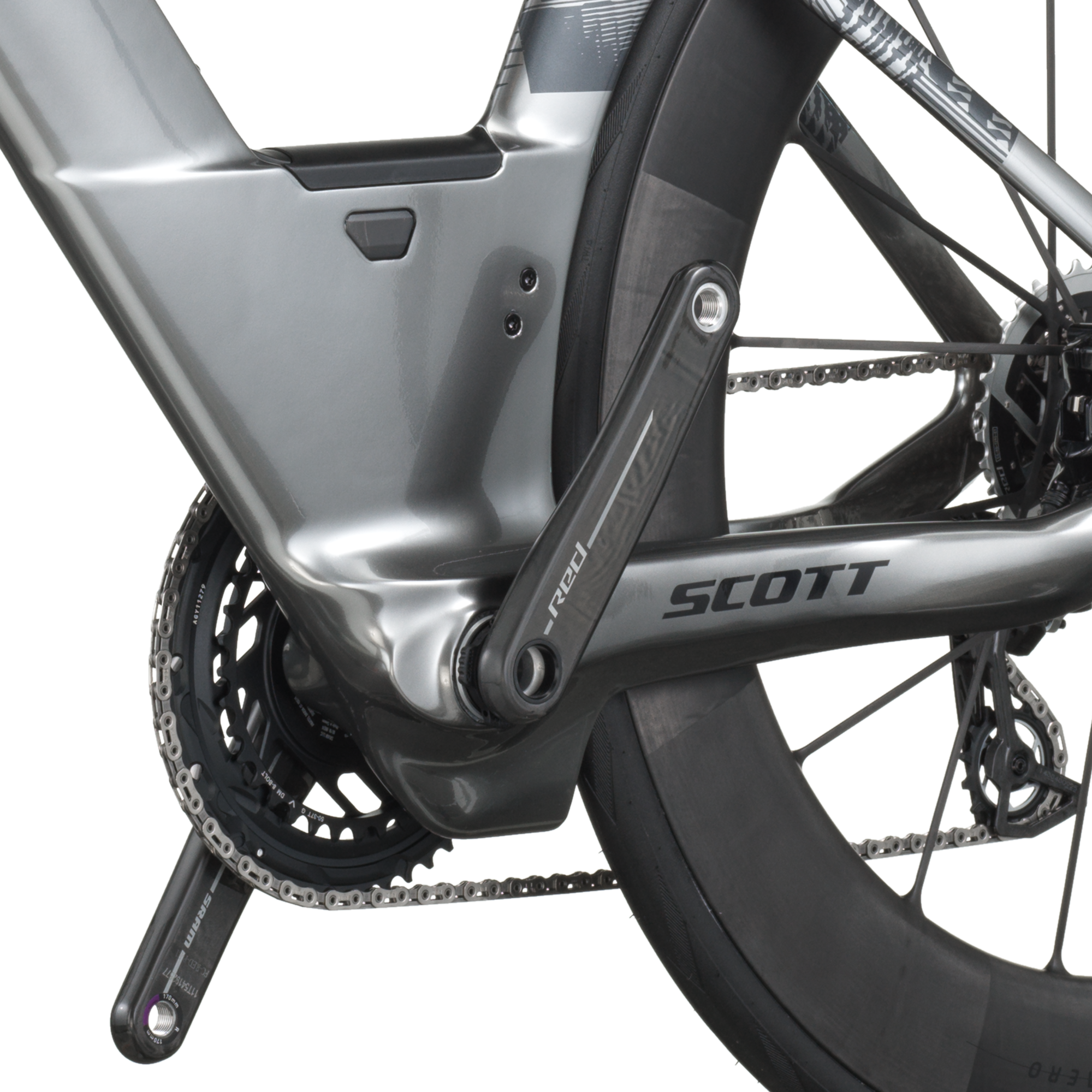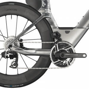 La transmission est une SRAM RED AXS électronique 24 vitesses avec blocage sans fil et pédalier Power Meter (50/37 T) pour des passages de vitesses ultra‑précis et une mesure de puissance intégrée adaptée aux efforts chronométrés.