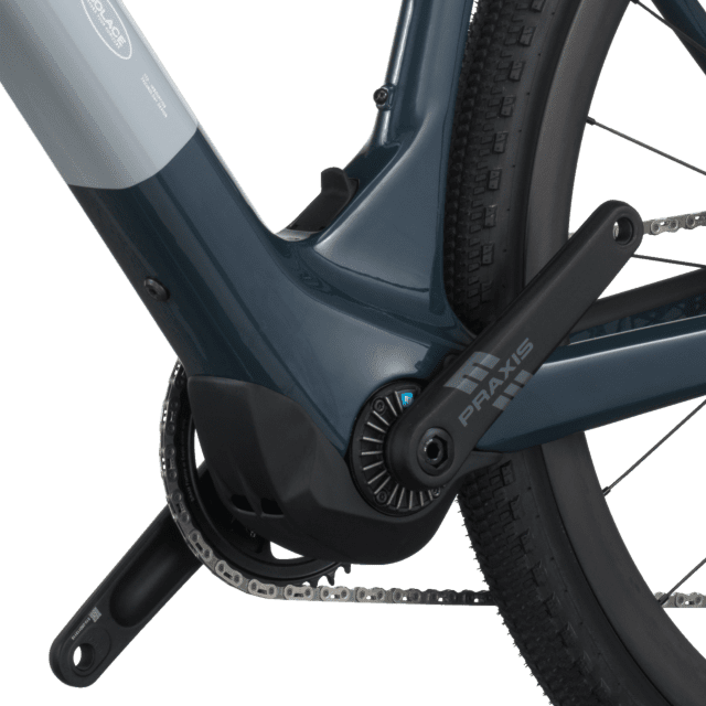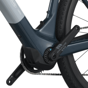 Il est motorisé par le moteur central TQ HPR60 (~60 Nm) avec une batterie interne 360 Wh et possibilité d’ajouter un prolongateur de 160 Wh pour allonger l’autonomie, offrant une assistance fluide jusqu’à 25 km/h pour gravir pentes ou prolonger les escapades.