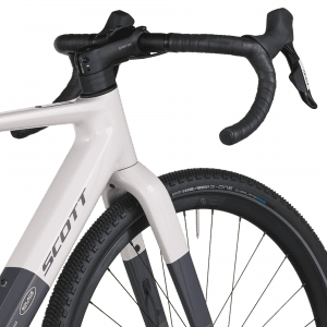Le Scott Solace Gravel 30 est un gravel électrique polyvalent haut de gamme construit autour d’un cadre Solace Gravel Disc HMX carbone à géométrie endurance avec intégration interne des câbles et compatibilité avec un prolongateur d’autonomie.