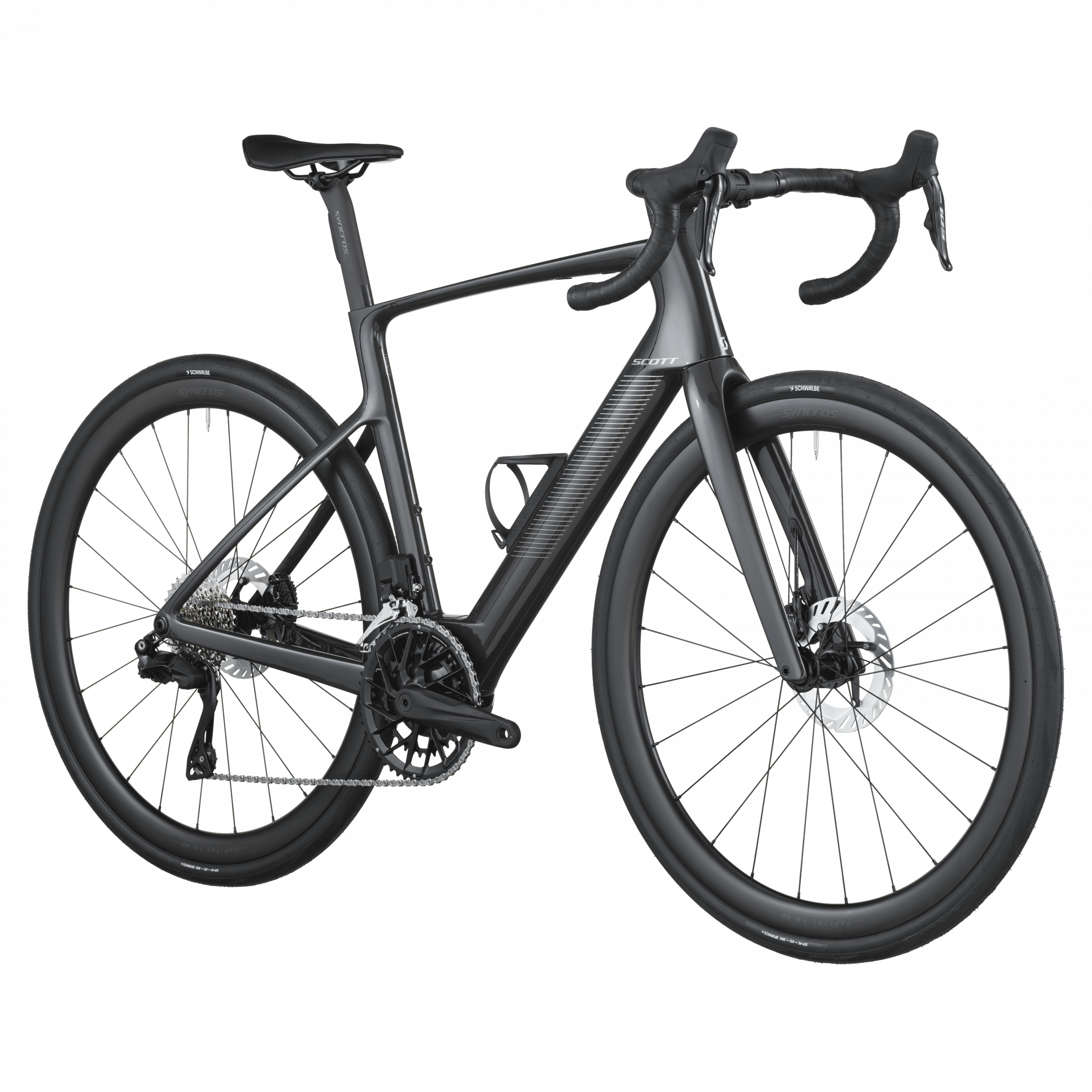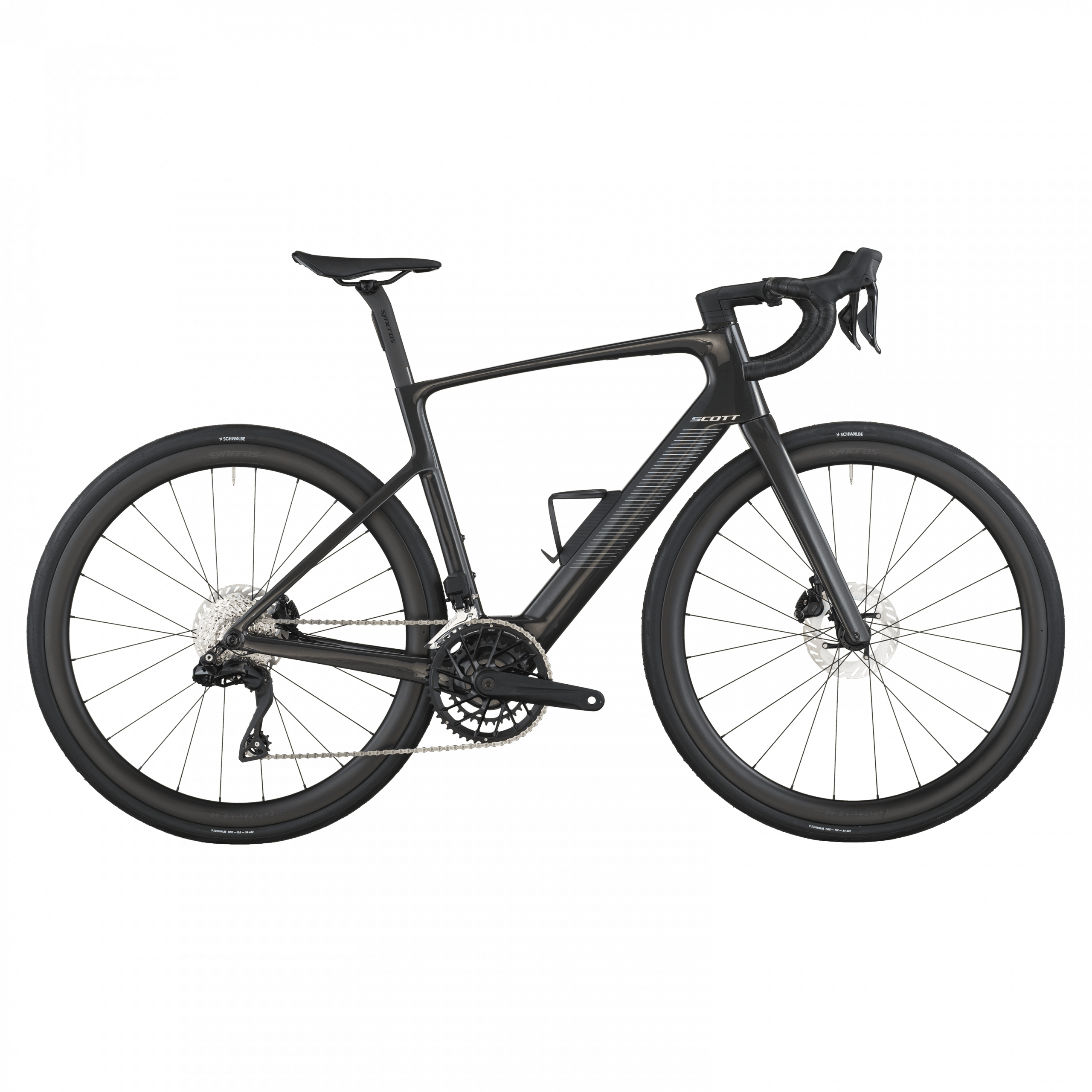 Le freinage est assuré par des freins à disque hydrauliques Shimano BR-R7170 (rotors 160 mm avant/arrière) pour puissance et modulation, tandis que les roues Syncros Capital 1.0 40 Disc et pneus Schwalbe ONE 700×34 C allient rendement, confort et fiabilité.
