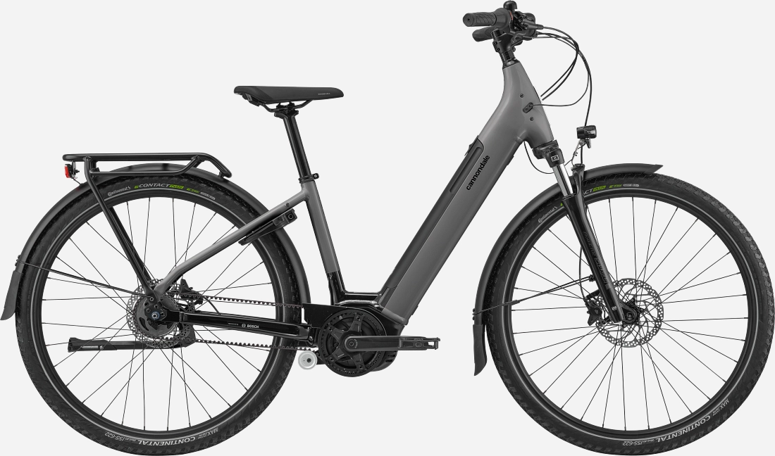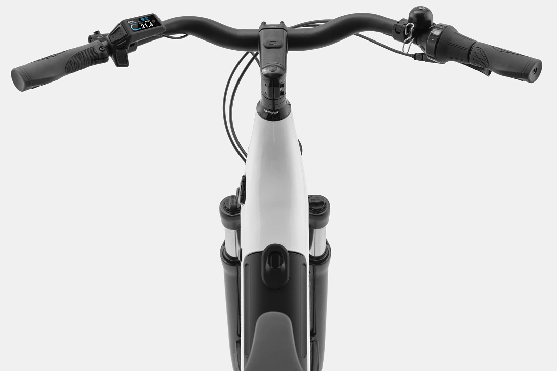 Le Cannondale Mavaro Neo 4 est un VAE urbain confortable et capable : cadre SmartForm C2 Alloy, disponible en low step-thru ou top tube, intégration soignée pour des trajets fluides au quotidien.