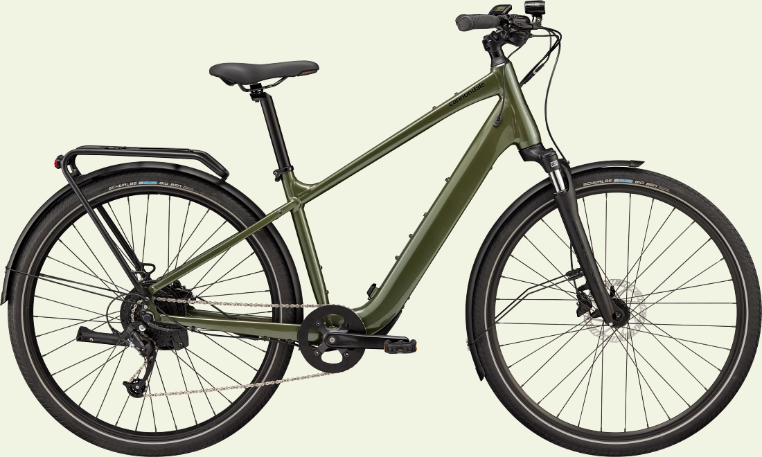Le Cannondale Mavaro SL 2 est un VAE urbain léger et agile, avec cadre bas alu step-thru et position droite pour des trajets confortables (roues 27,5″).