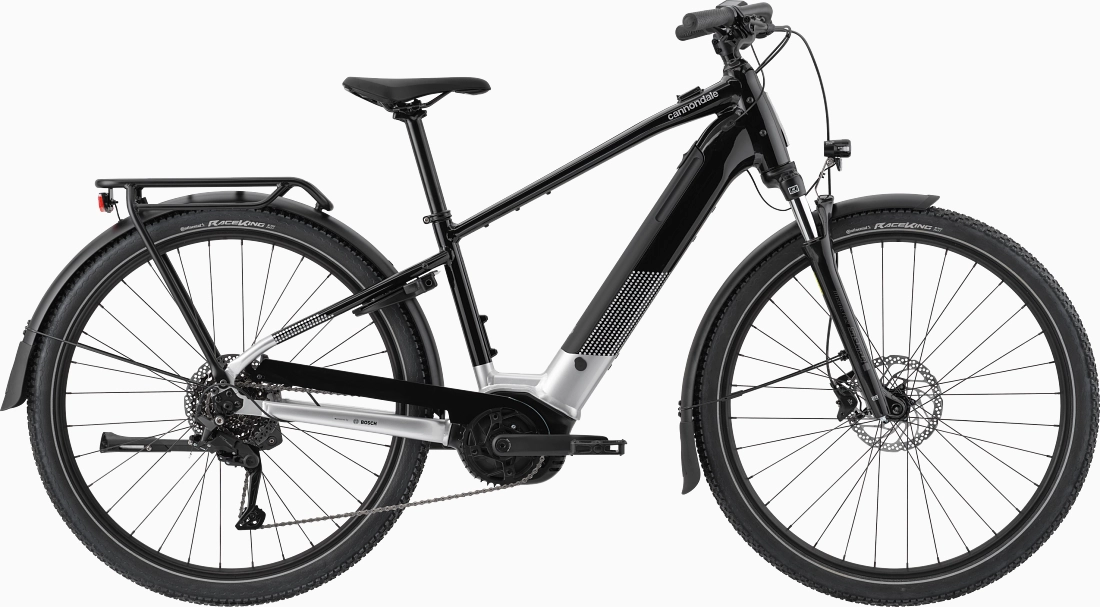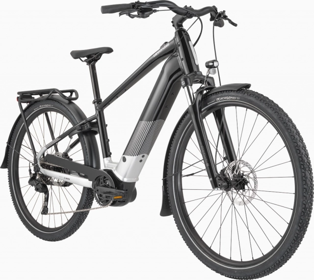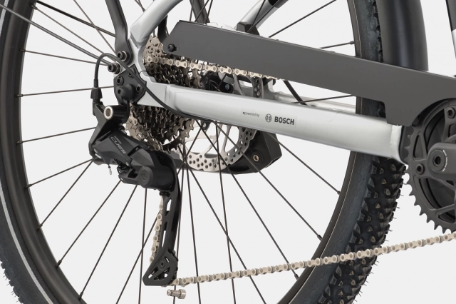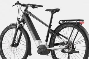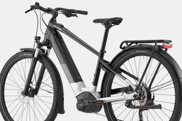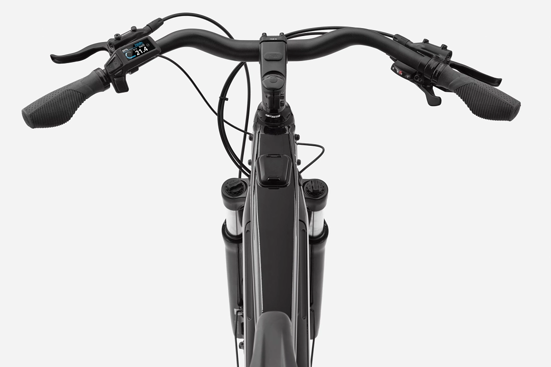 Le Cannondale Tesoro Neo X 3 allie élégance et praticité grâce à son cadre Step-Thru SmartForm C2 Alloy et sa fourche à suspension 63 mm pour filtrer les irrégularités.