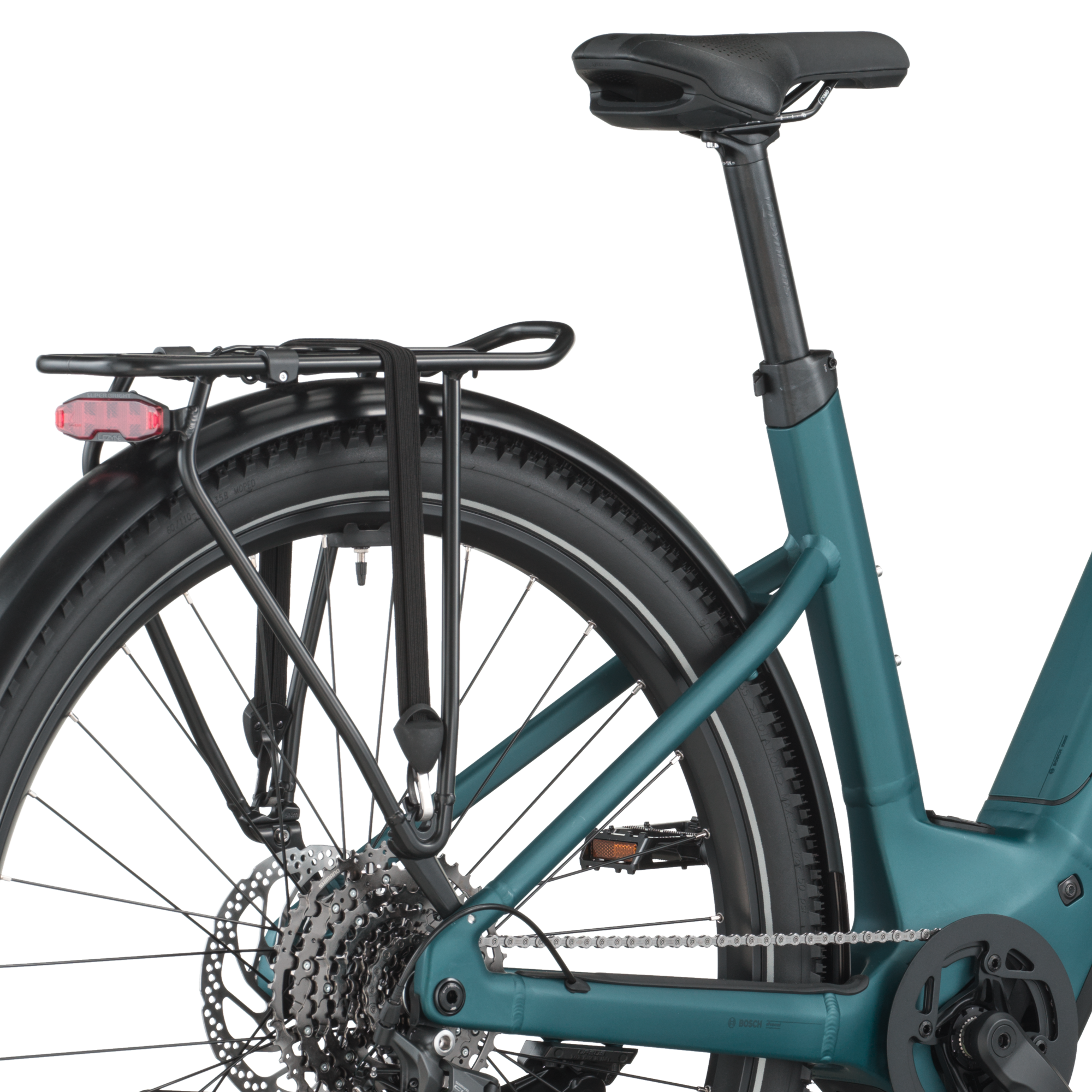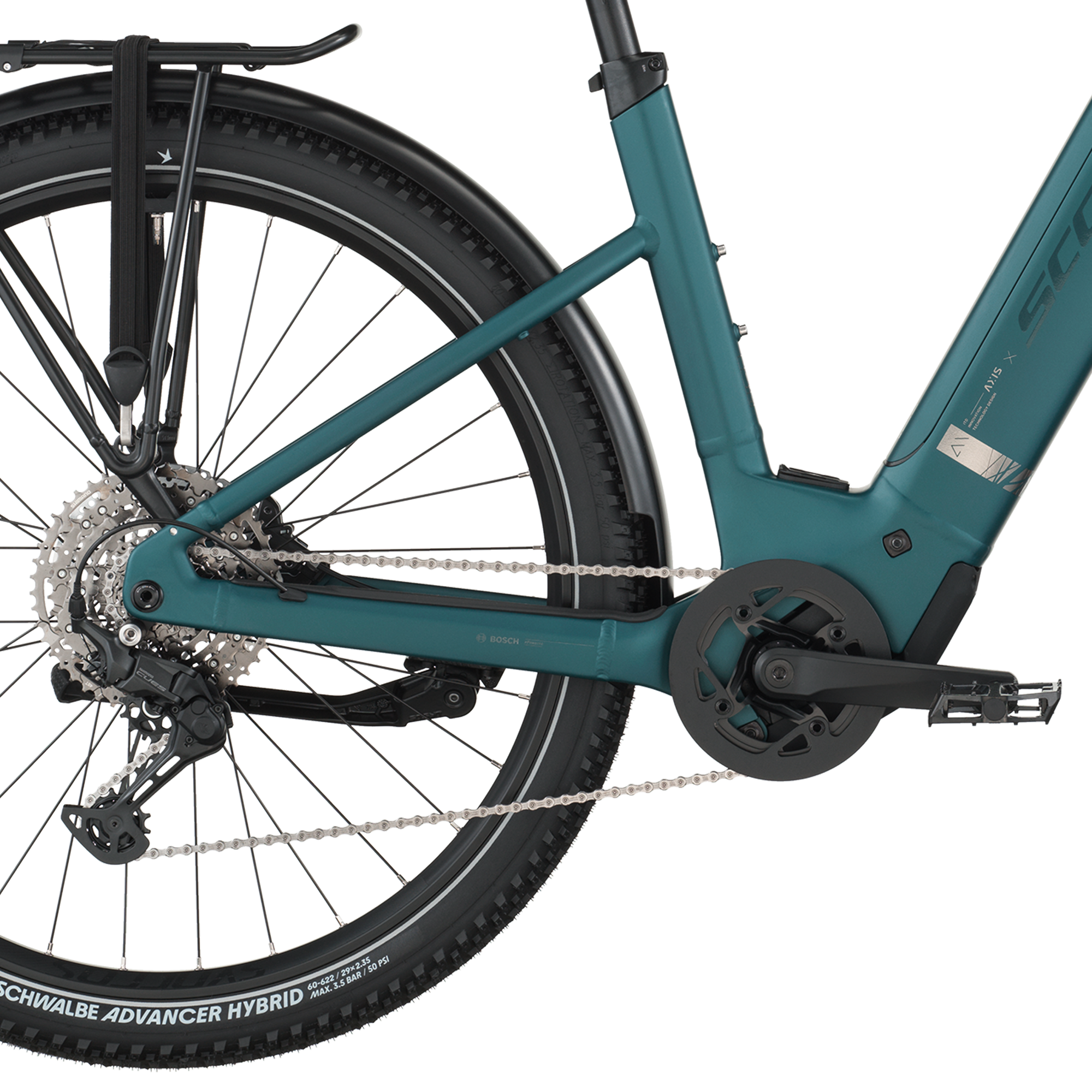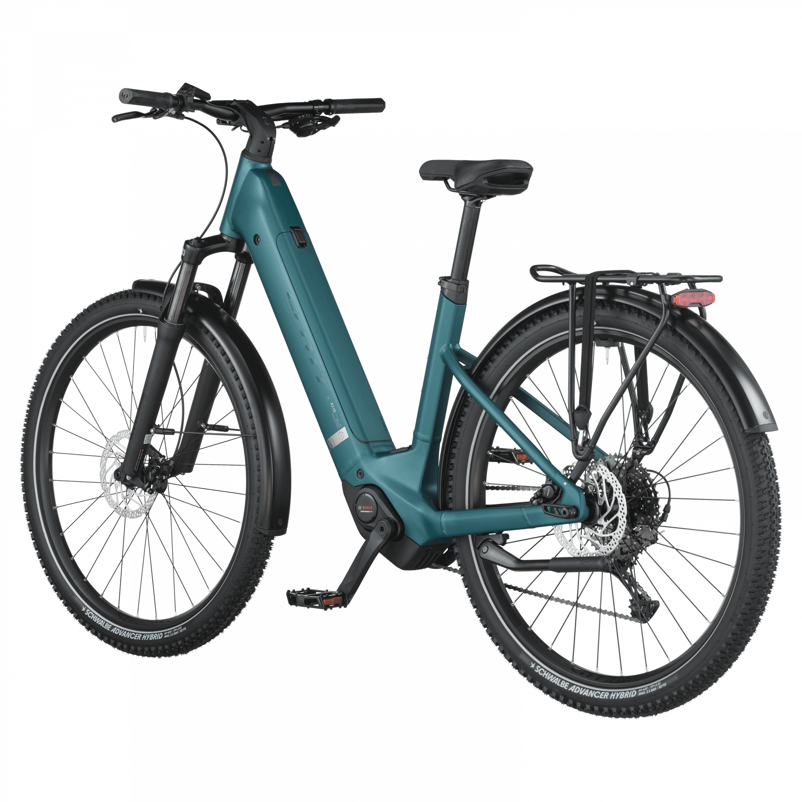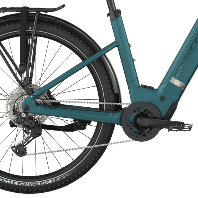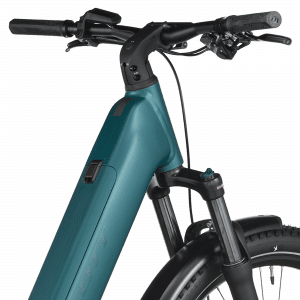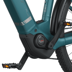L’assistance électrique est assurée par le moteur Bosch Performance Line (~75 Nm) associé à une batterie Bosch PowerTube 600 Wh SmartSystem et un écran Bosch Purion 200, offrant une assistance fluide jusqu’à 25 km/h pour gravir pentes, relancer et prolonger les explorations.