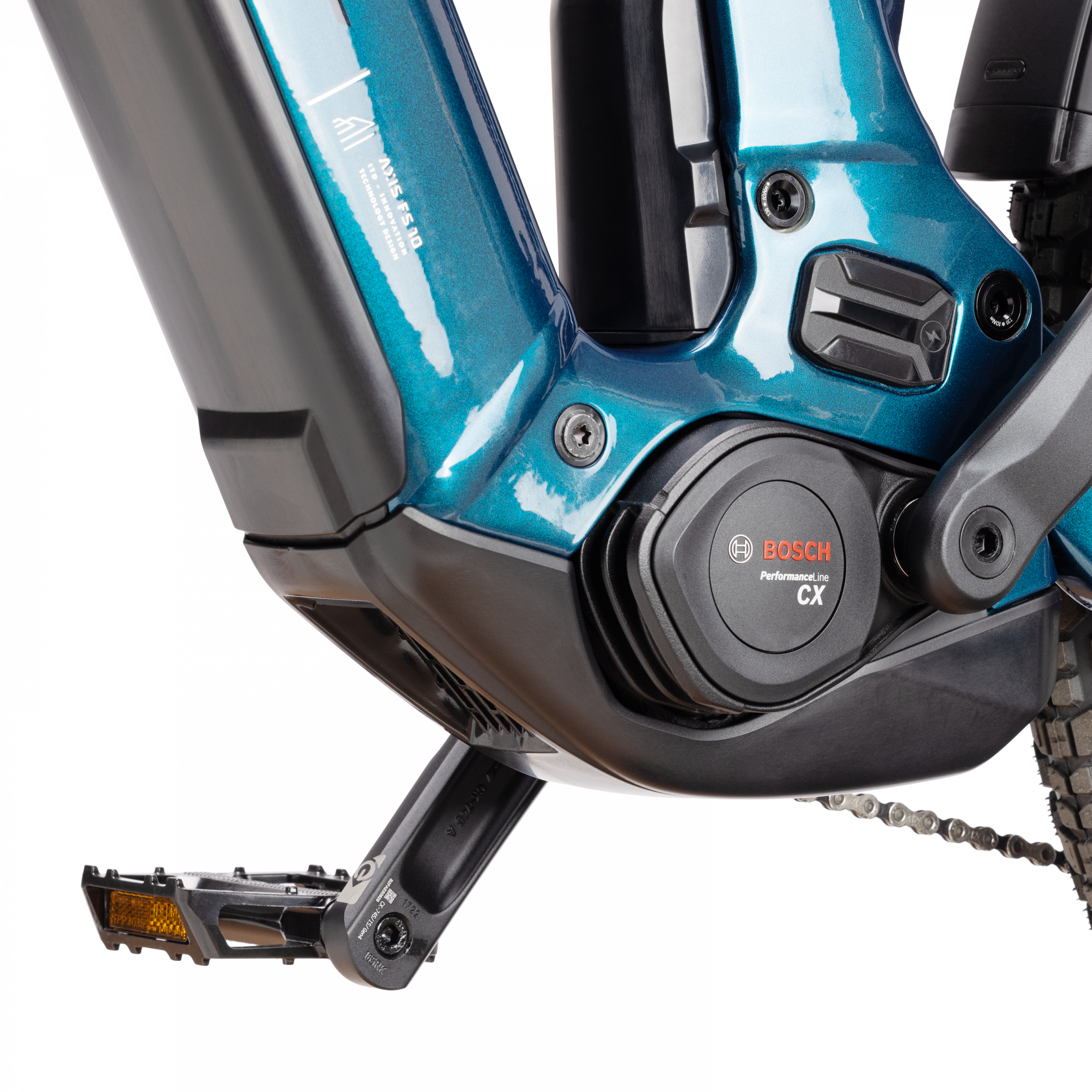 Il est propulsé par le moteur Bosch Performance Line CX (~85 Nm) associé à une batterie Bosch PowerTube 800 Wh SmartSystem, offrant une assistance fluide jusqu’à 25 km/h et une autonomie adaptée à de longues sorties tout-terrain.