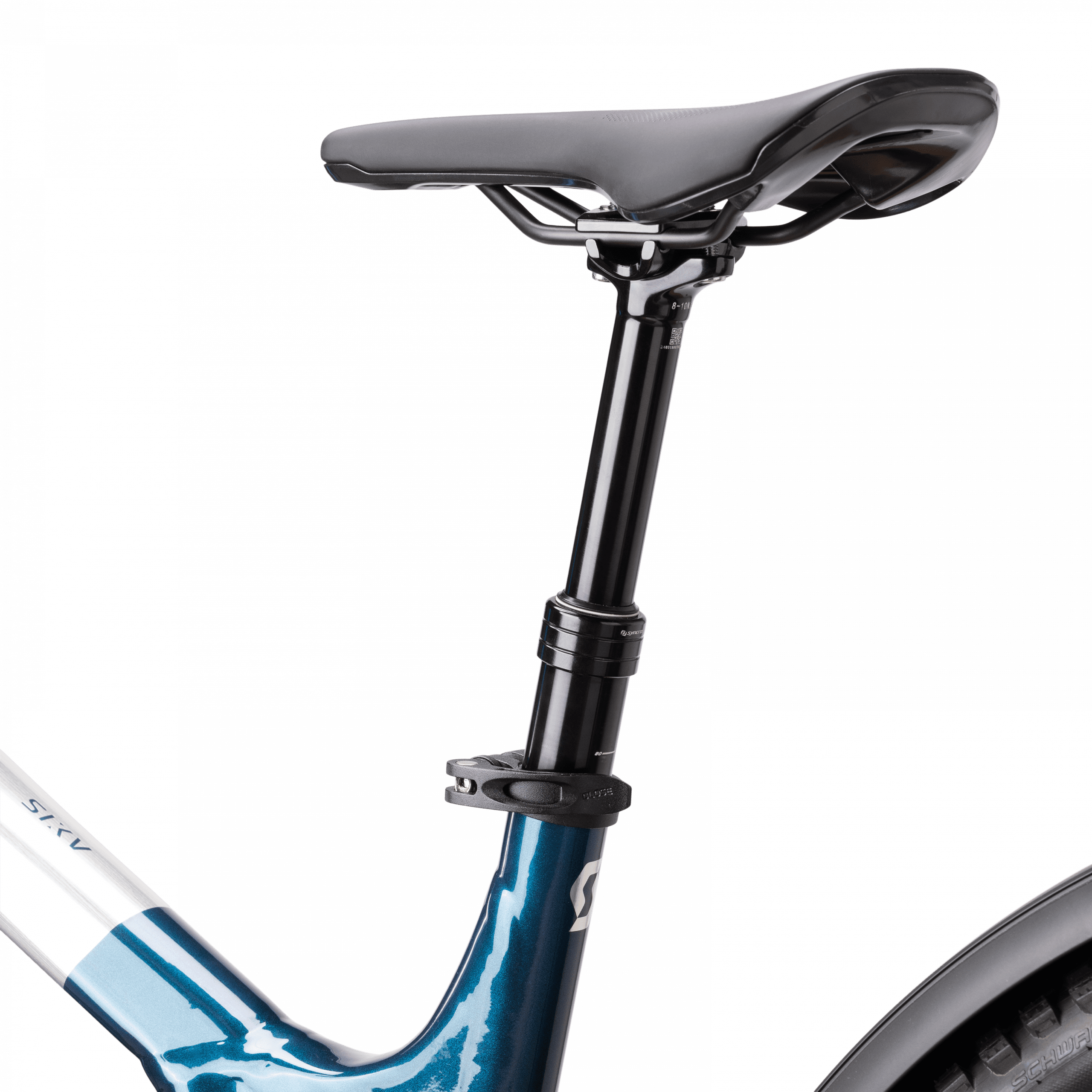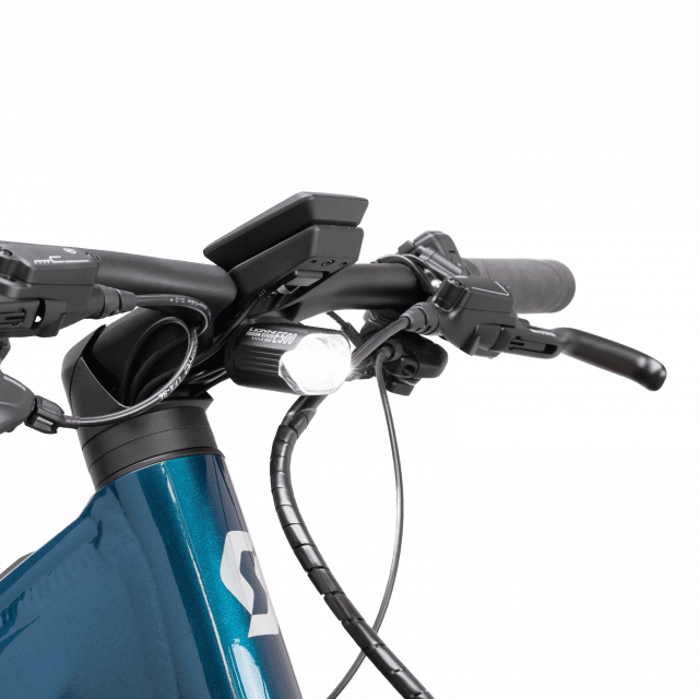 La suspension est généreuse avec 140 mm de débattement à l’avant et à l’arrière via une fourche FOX AWL 34 (140 mm) et un amortisseur FOX Float eRIDE (140 mm), tous deux pilotables via la commande SCOTT TwinLoc 3P pour adapter la géométrie selon les sections roulantes ou techniques.