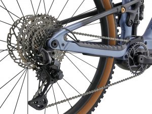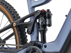 Il repose sur le même cadre en aluminium ALUXX SL avec le système de suspension arrière FlexPoint à biellettes de 140 mm de débattement, mais monte ici en qualité avec un amortisseur Fox Float X 185×52,5 mm — connu pour sa précision et son maintien en conditions extrêmes — et une fourche Fox 36 Rhythm de 150 mm avec amortisseur Grip. Cette combinaison full-Fox représente un saut qualitatif notable par rapport aux E+ 1 et 2 équipés de suspensions Giant, offrant un ressenti plus précis, une meilleure progressivité et un contrôle accru sur les passages les plus techniques.