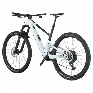 Côté transmission et freinage, il reçoit une transmission SRAM S1000 Eagle AXS 12 vitesses sans fil pour des changements précis, et des freins hydrauliques SRAM Motive Bronze à 4 pistons avec rotors 180 mm, garantissant puissance et modulation.