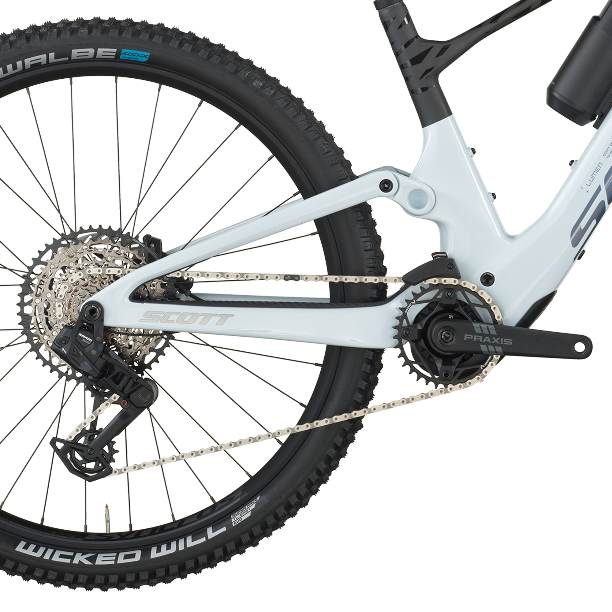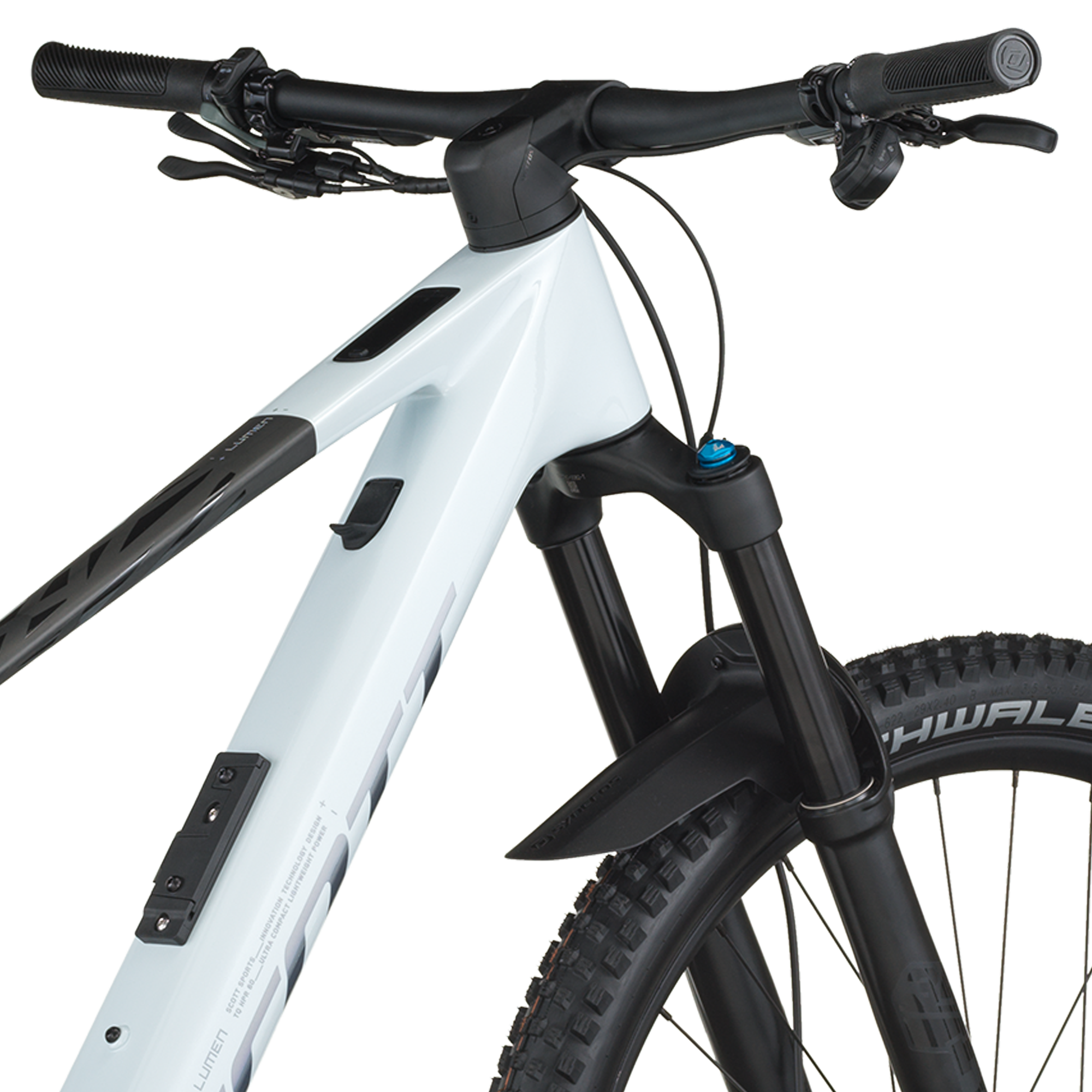 Le Scott Lumen 910 est un VTT tout-suspendu électrique haut de gamme conçu pour le cross-country et le trail sportif, avec un cadre carbone HMX rigide et léger intégrant le routage interne des câbles, l’interface UDH et la technologie Flex Pivot pour une suspension fluide et réactive.
