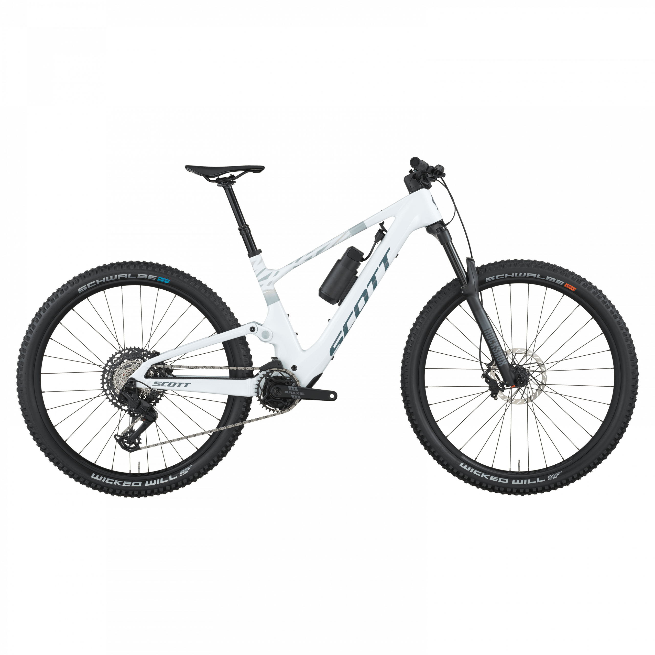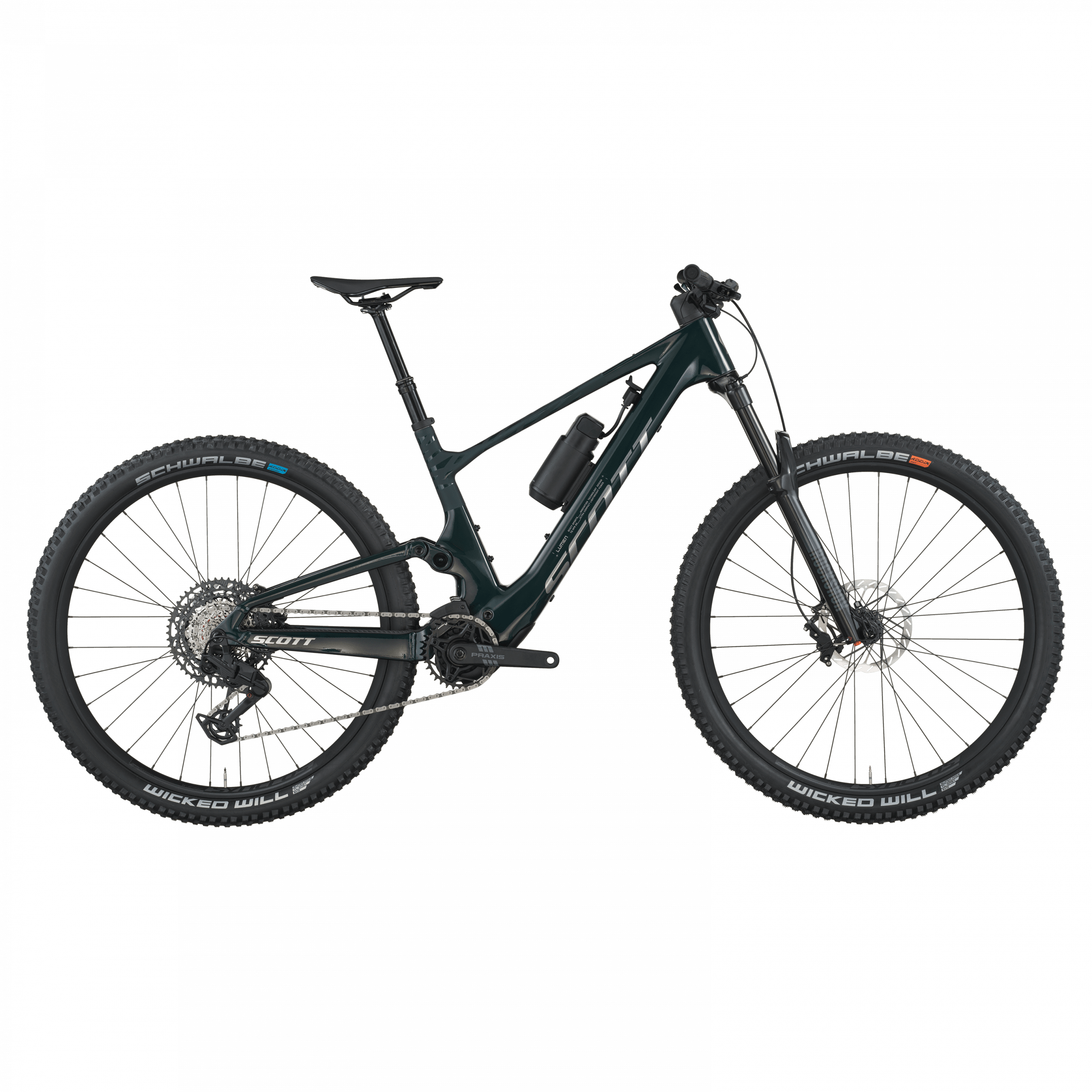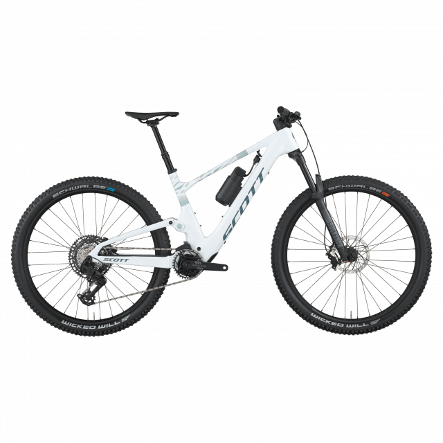 La transmission est une SRAM Eagle 70 12 vitesses (cassette 10-52T) avec composants robustes, tandis que les freins hydrauliques SRAM DB4 à 4 pistons et les roues Syncros X-30S tubeless-ready montées de pneus Schwalbe Wicked Will 29×2,4″ assurent adhérence, puissance de freinage et contrôle sur sentiers.