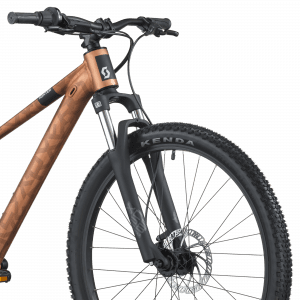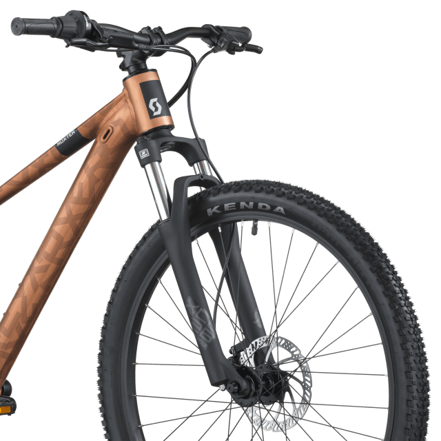 Il est monté avec une fourche SR Suntour XCE28 (≈ 80 mm de débattement), apportant confort et absorption des irrégularités pour accompagner l’apprentissage sur terrain varié.