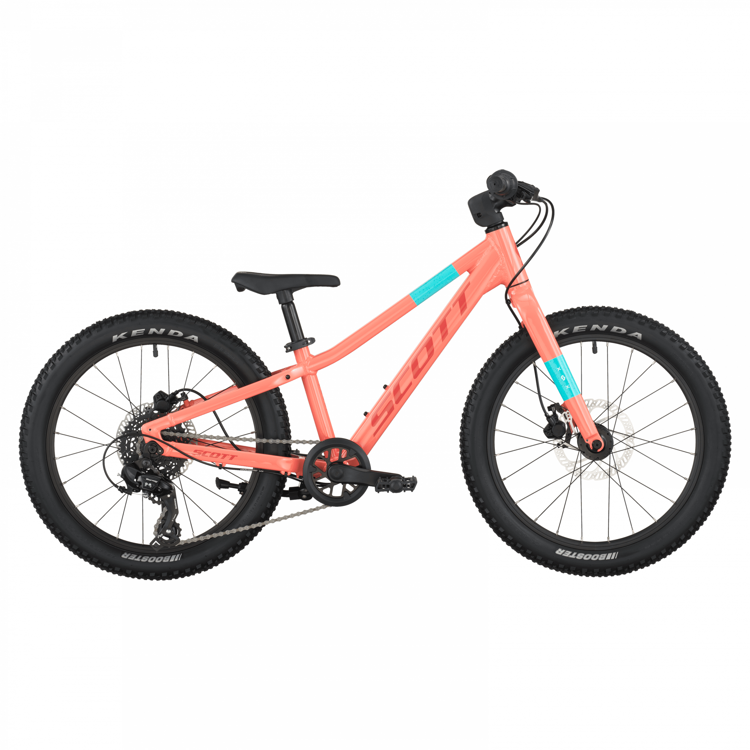 Le freinage est pris en charge par des freins à disque hydrauliques Tektro HD‑M276 (disques de 160 mm), garantissant puissance et modulation de freinage sûres, tandis que les pneus Kenda K1227 Booster 20 × 2,2″ et le cockpit spécifique enfant assurent traction et confort.
