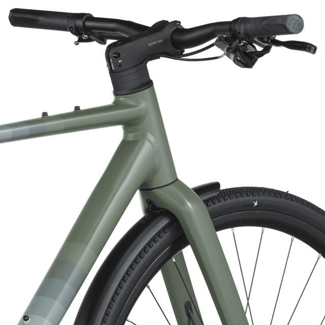 Le freinage est assuré par des freins à disque hydrauliques Tektro HD-R3020 Flatmount avec rotors de 160 mm, garantissant puissance et modulation efficaces quelles que soient les conditions météo ou le rythme des trajets.