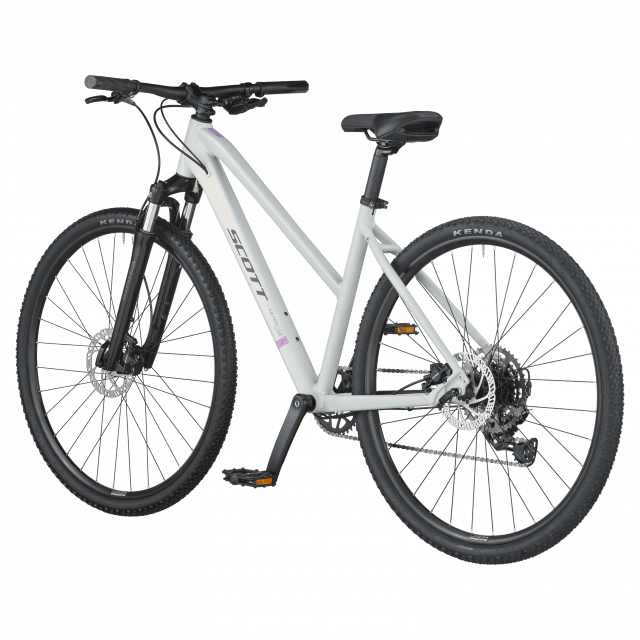 Le freinage est assuré par des disques hydrauliques Tektro HDM275 (rotors 160 mm avant/arrière) pour une puissance et une modulation efficaces quelles que soient les conditions, tandis que les pneus Kenda Booster 700×45 C associent adhérence et confort sur surfaces mixtes.