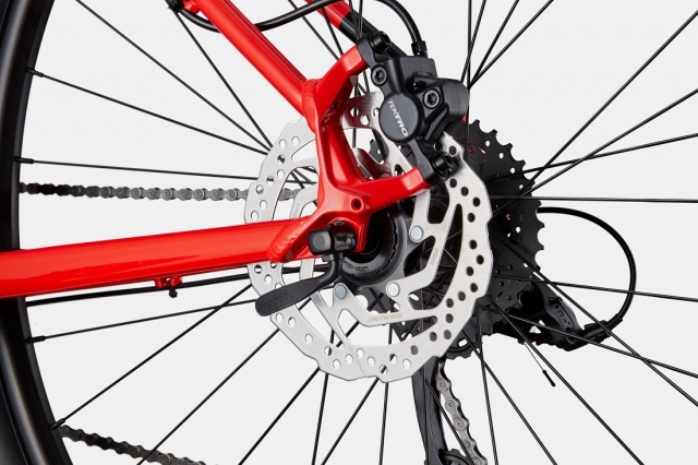 La transmission microSHIFT 9 vitesses (double plateau) et les freins Tektro M275 hydrauliques procurent une maîtrise précise et une puissance de freinage fiable.