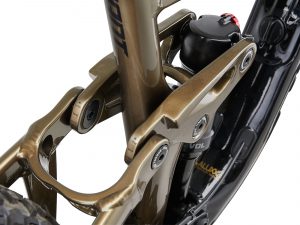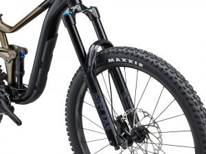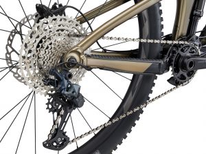 Roues de type 29″ à l’avant, pneus généreux type Maxxis Assegai / Minion DHR II (≈ 2,4-2,5″) pour un bon grip, tout en conservant la maniabilité, et possibilité de réglage de la géométrie grâce à un flip-chip pour ajuster la stabilité ou l’agilité selon le terrain.