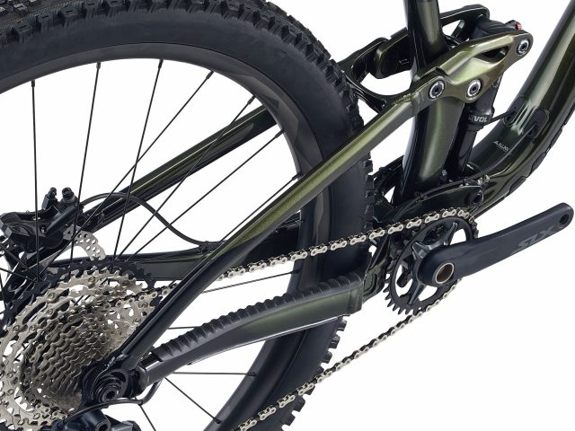 L’avant est confié à une fourche Fox 34 Performance 130 mm de débattement avec amortisseur Fox Float DPS Performance sur l’arrière, tous deux “custom tuned” pour Giant, pour garantir contrôle, confort et capacité à encaisser les trajectoires plus engagées.