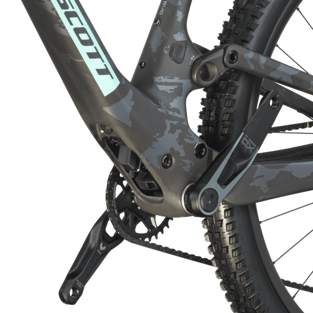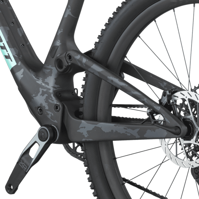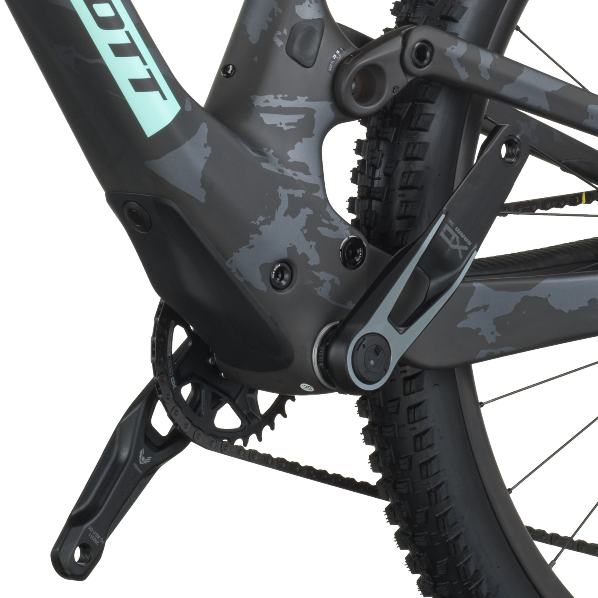 Sa suspension est pilotée par le système RockShox Flight Attendant (politique électronique) : fourche Pike Ultimate 140 mm et amortisseur SIDLuxe Ultimate 120 mm, qui adaptent automatiquement les modes (Lockout / Pedal / Descend) en fonction du terrain pour optimiser traction et efficacité.