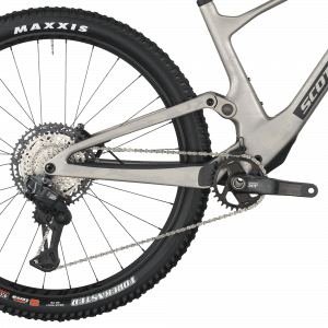 La suspension comprend une fourche FOX 36SL Float Performance Elite Air Grip SL avec 140 mm de débattement et un amortisseur FOX NUDE 6T EVOL (120 mm, réglable Lockout/Traction/Descend via système TwinLoc), offrant un excellent compromis entre rendement en montée et contrôle en descente.