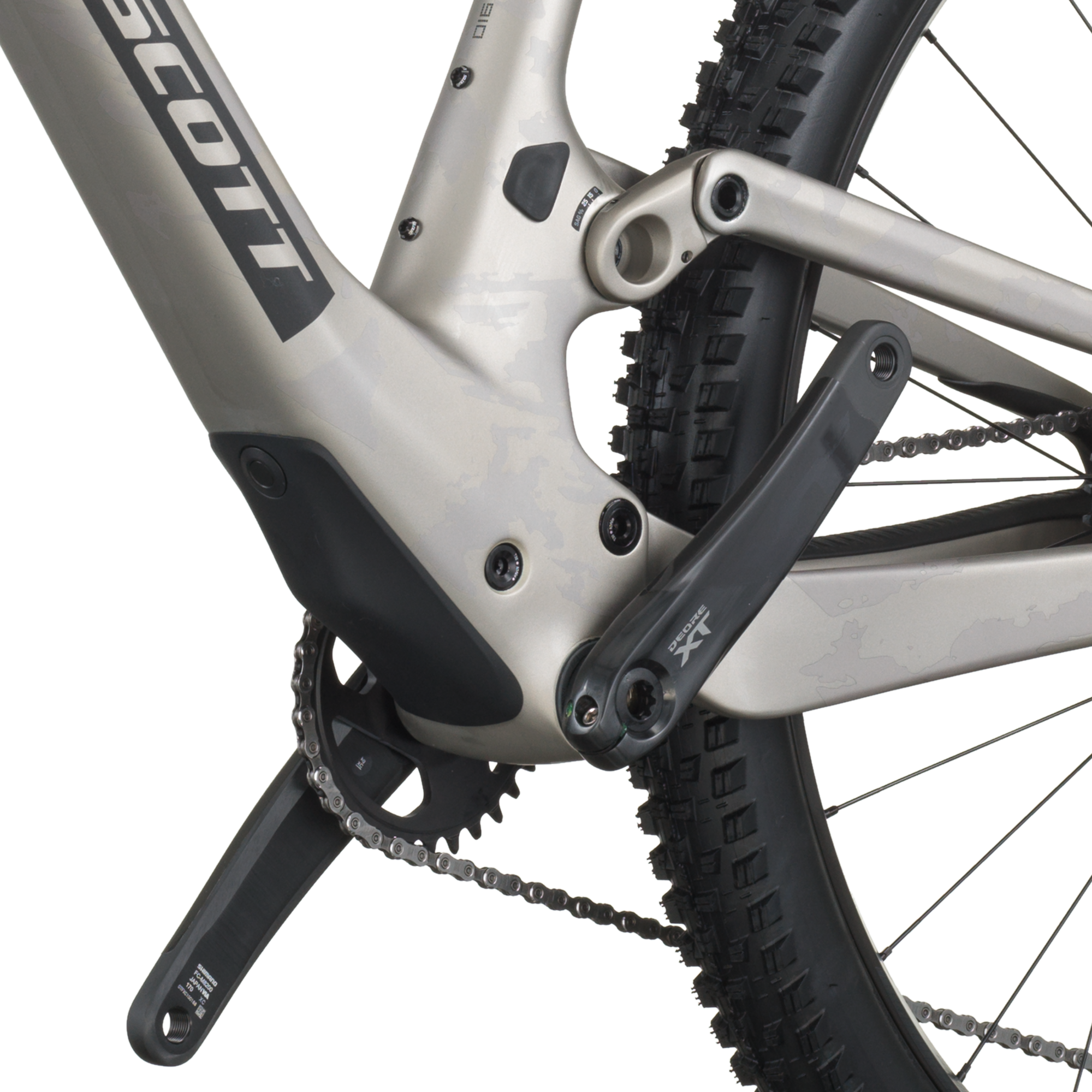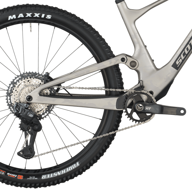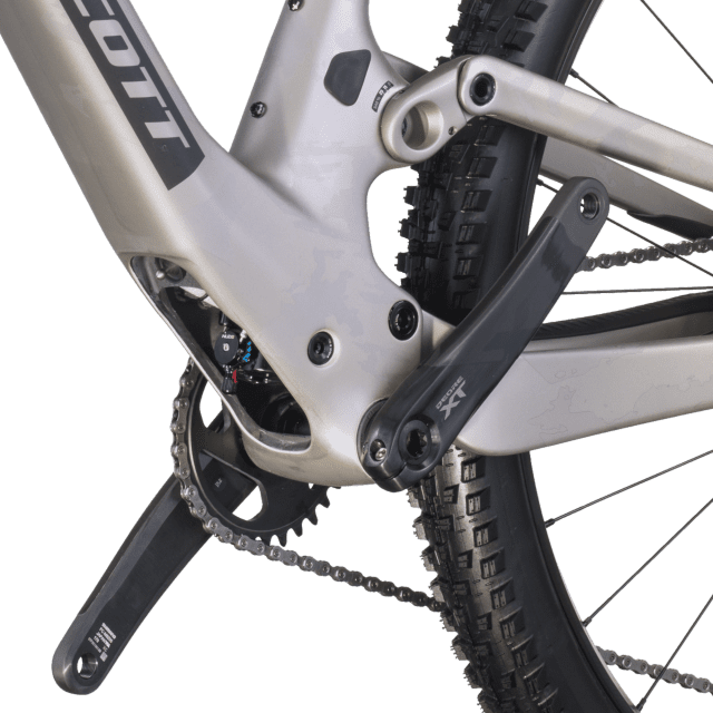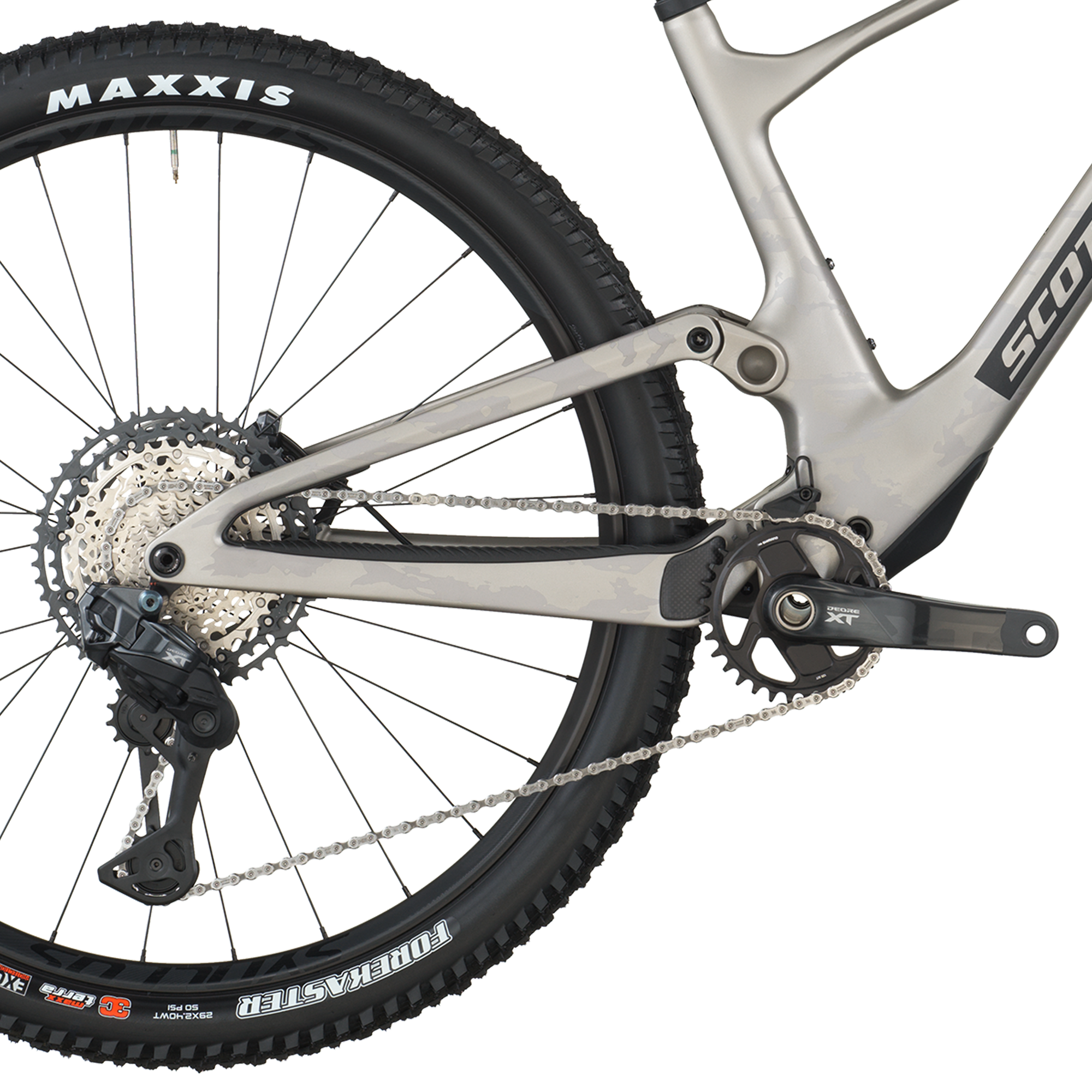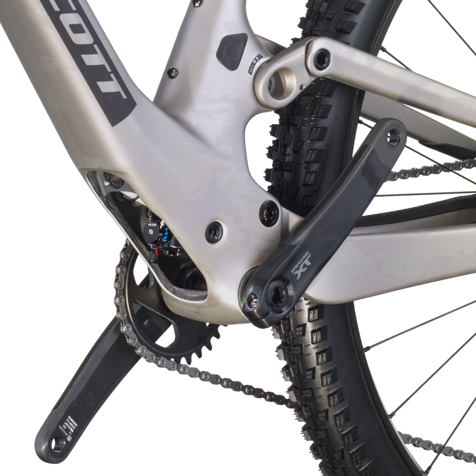 La transmission est une Shimano XT Di2 12 vitesses sans fil (pédalier 32 T et cassette 10-51 T) pour des changements ultra-précis et une large plage de développements adaptée à tous les terrains.
