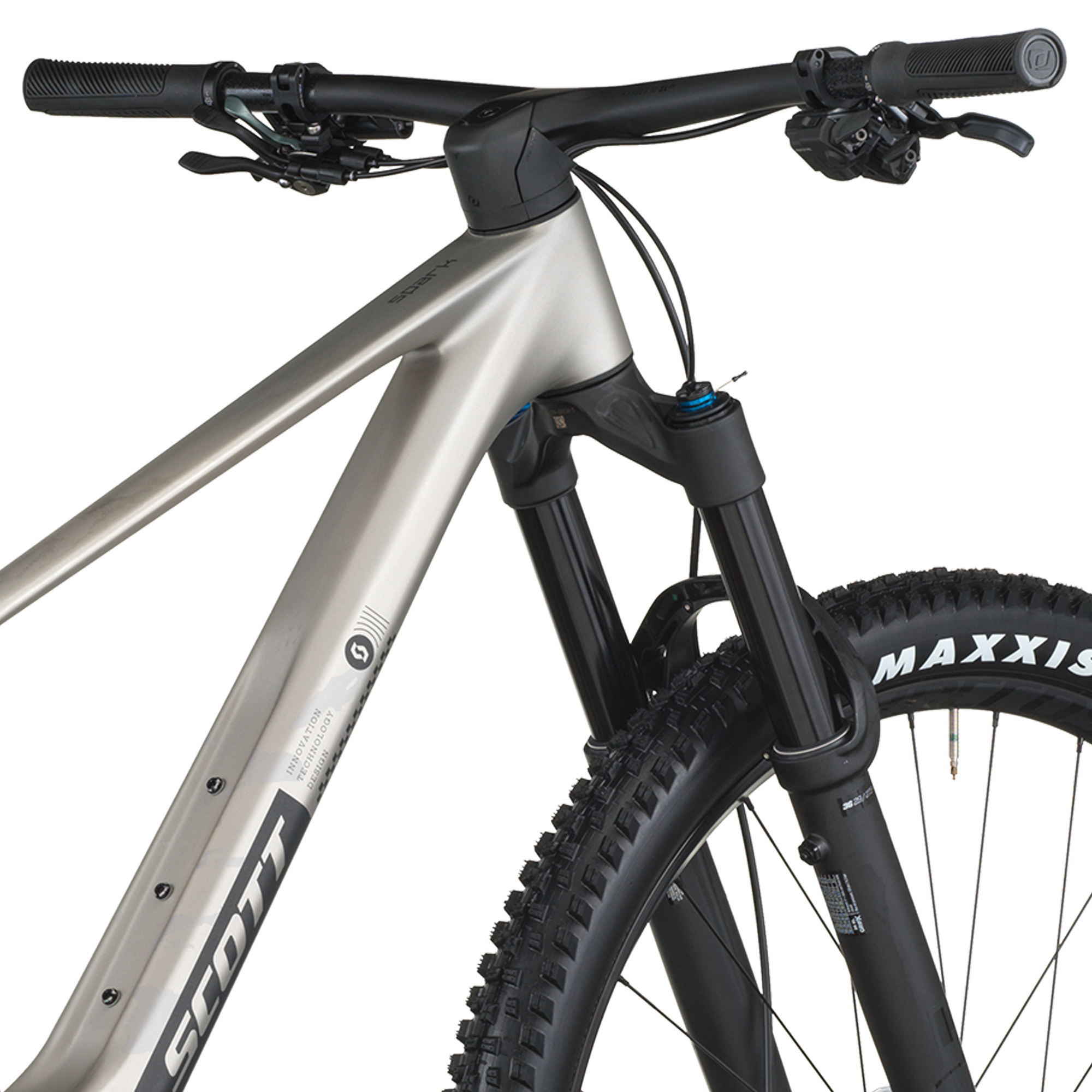 Le freinage est assuré par des freins à disque Shimano XT M8220 (4 pistons) avec rotors 180 mm, tandis que les roues Syncros Silverton 2.0-30 CL tubeless-ready montent des pneus Maxxis Forekaster 29×2.4″ EXO 3C pour adhérence, confort et polyvalence.