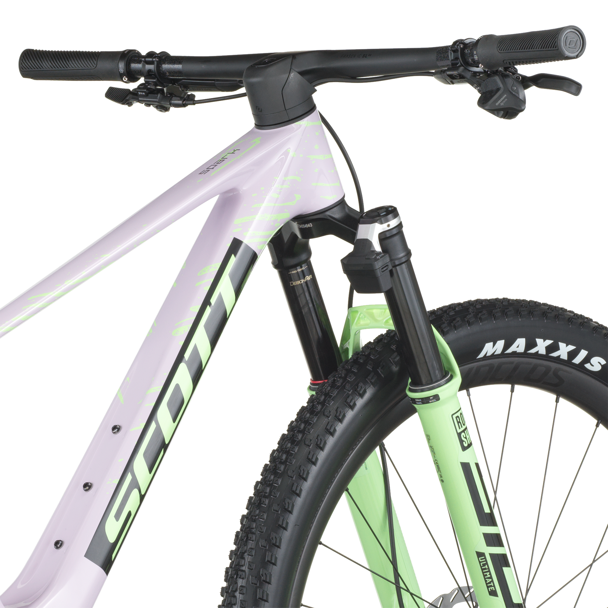 La suspension intègre un système électronique RockShox Flight Attendant avec une fourche RockShox SID Ultimate et un amortisseur RockShox SIDLuxe Ultimate Flight Attendant Custom (chacun 120 mm de débattement), qui s’adaptent automatiquement selon le terrain pour optimiser traction, rendement et confort.